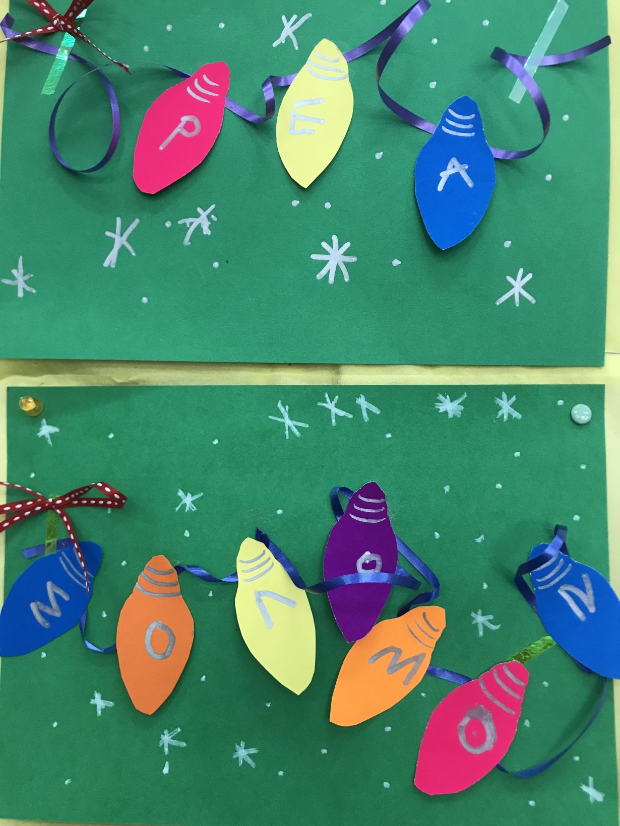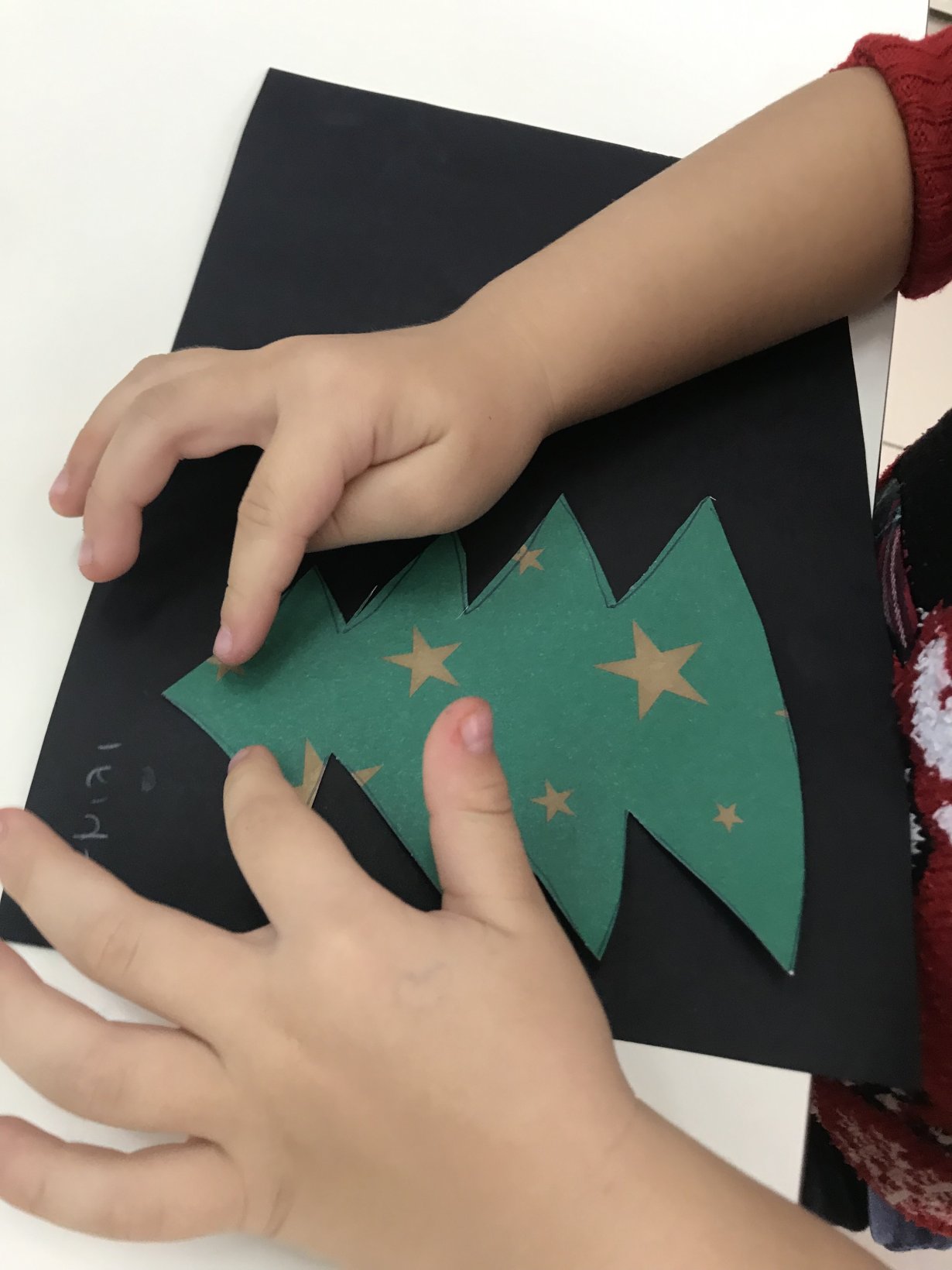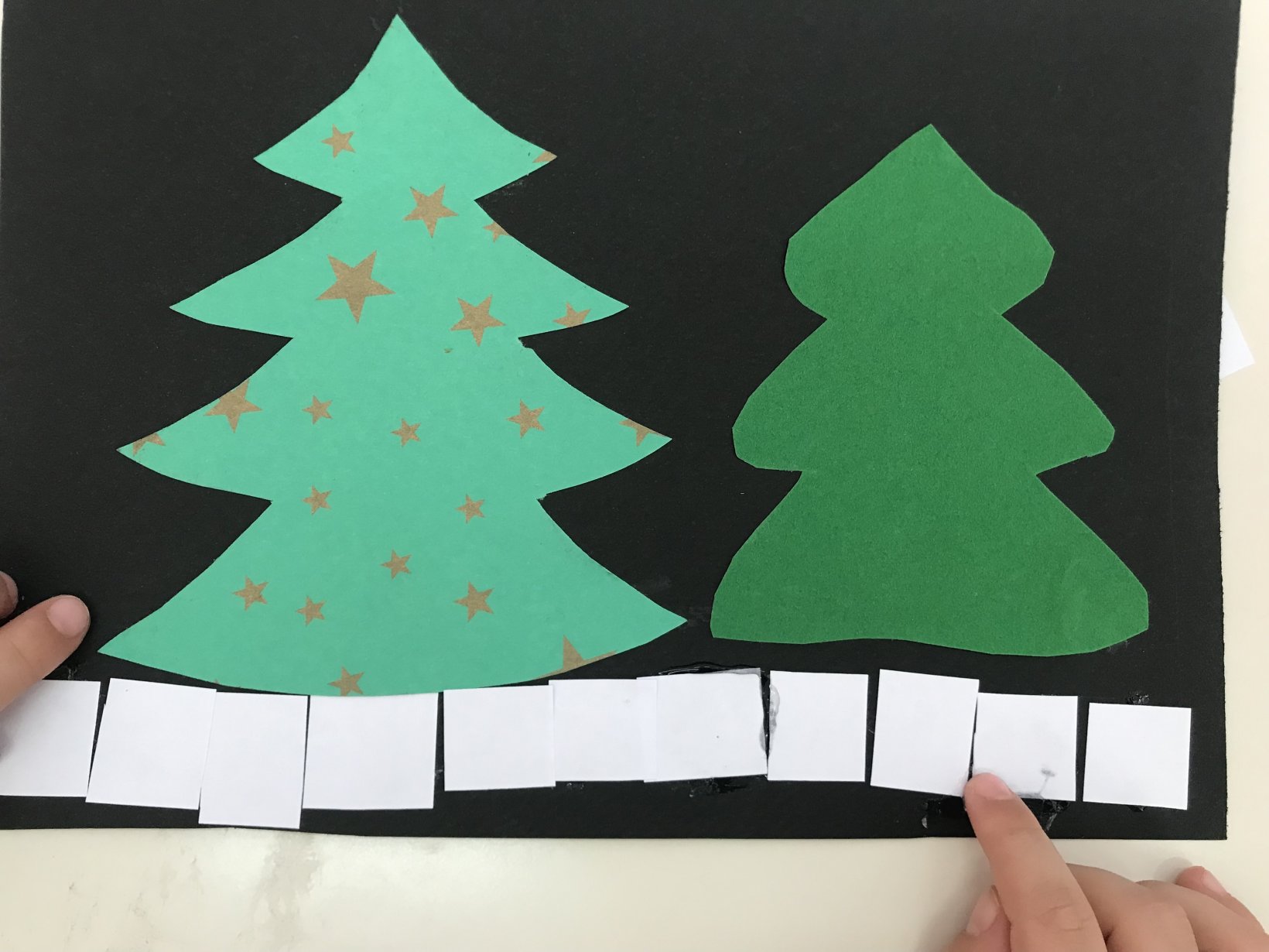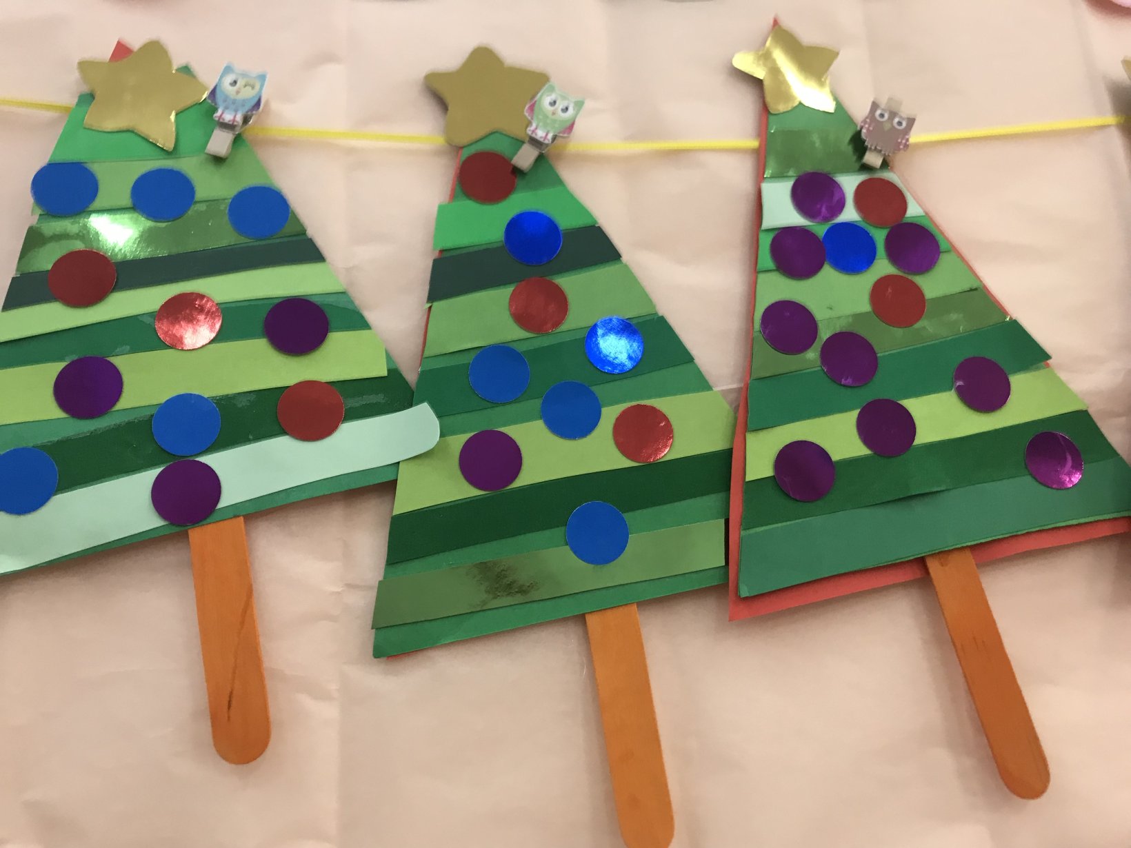 Αφού στέγνωσαν, έκαναν σχέδια με γκλίτερ πάνω στο δεντράκι.