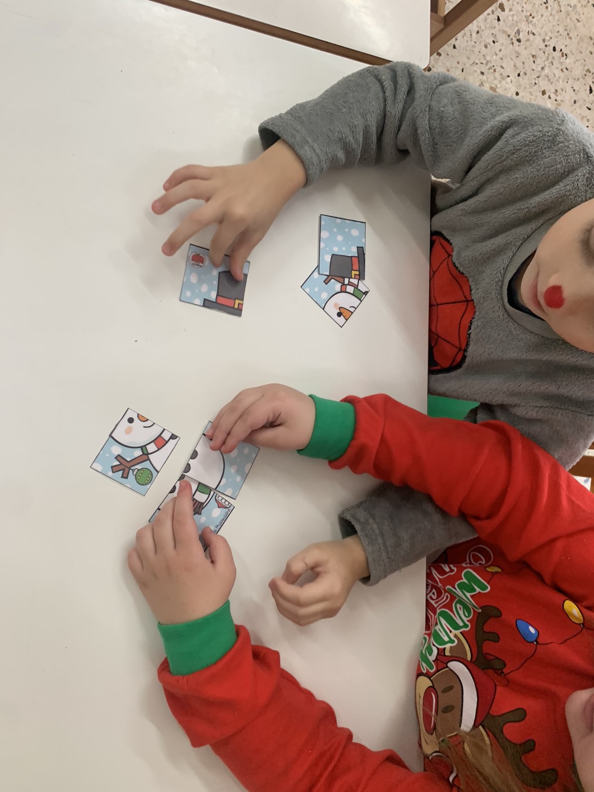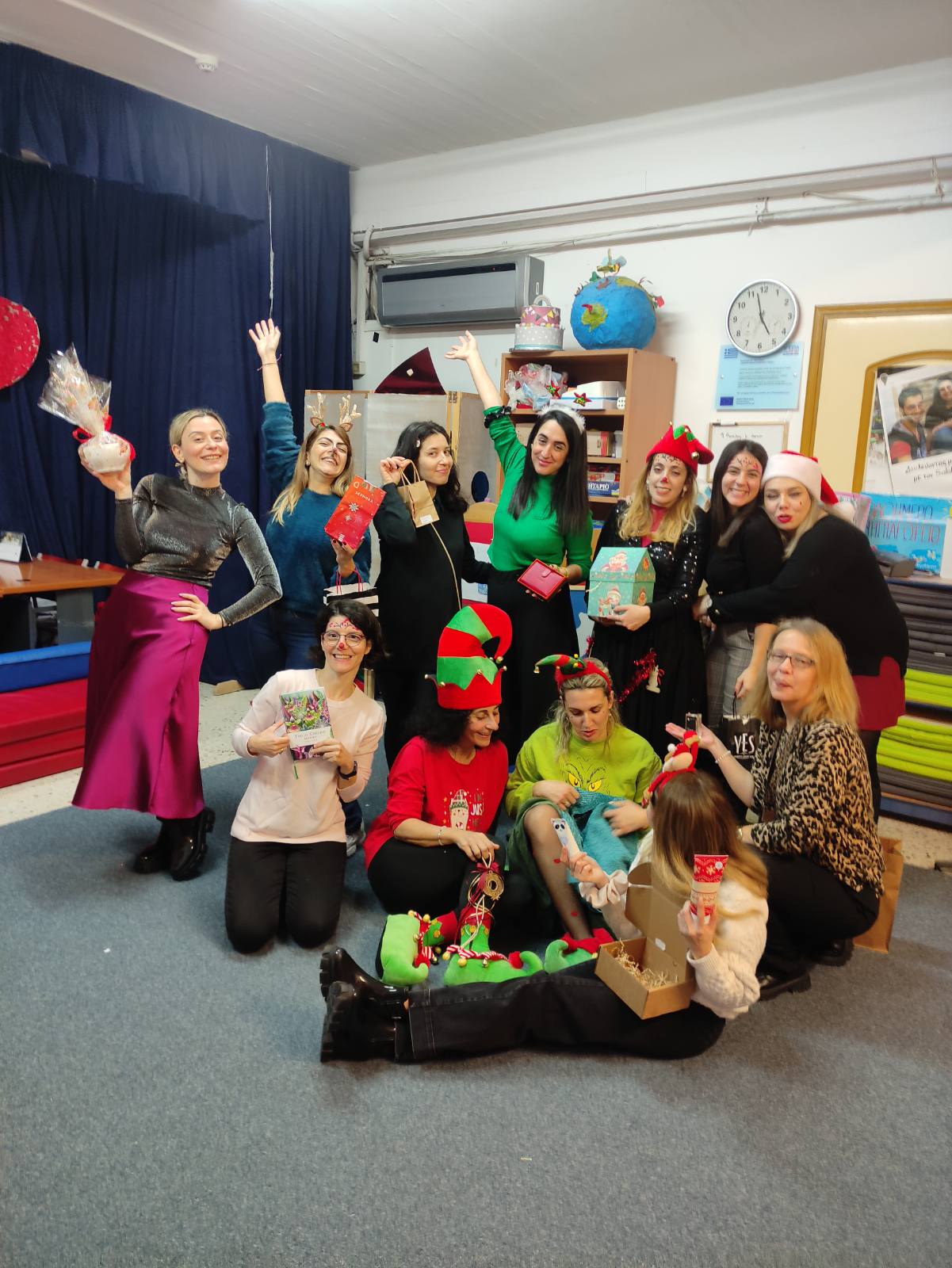 Στολίσαμε το σχολείο, φτιάξαμε χριστουγεννιάτικες κατασκευές, τραγουδήσαμε το Ρούντολφ στη Νοηματική στα Καλανταρίσματα, κάναμε pyjama party, όπου παίξαμε, χορέψαμε, είδαμε ταινία, φάγαμε χριστουγεννιάτικες λιχουδιές, ανταλλάξαμε βιβλία, ευχές, δώρα, στείλαμε γράμματα στον Άγιο Βασίλη, ο οποίος μας επισκέφτηκε και μας μοίρασε κι εκείνος τα δώρα του, παρακολουθήσαμε την παρουσίαση του Βιβλίου “Παμπλίνο, το ξωτικό του Τυπογραφείου” από τις εκδόσεις ΙΤΑΝΟΣ και προσφέραμε και τη μικρή μας βοήθεια στην εθελοντική ομάδα Give σε συνεργασία με την MKO Δεσμός – Desmos.