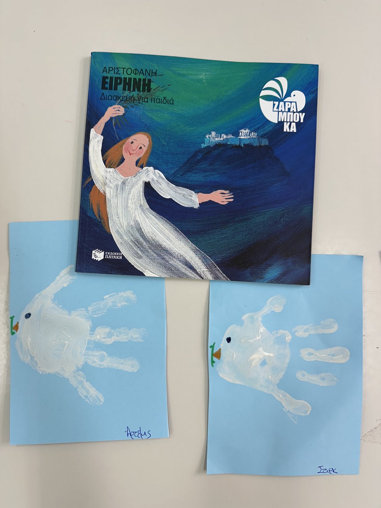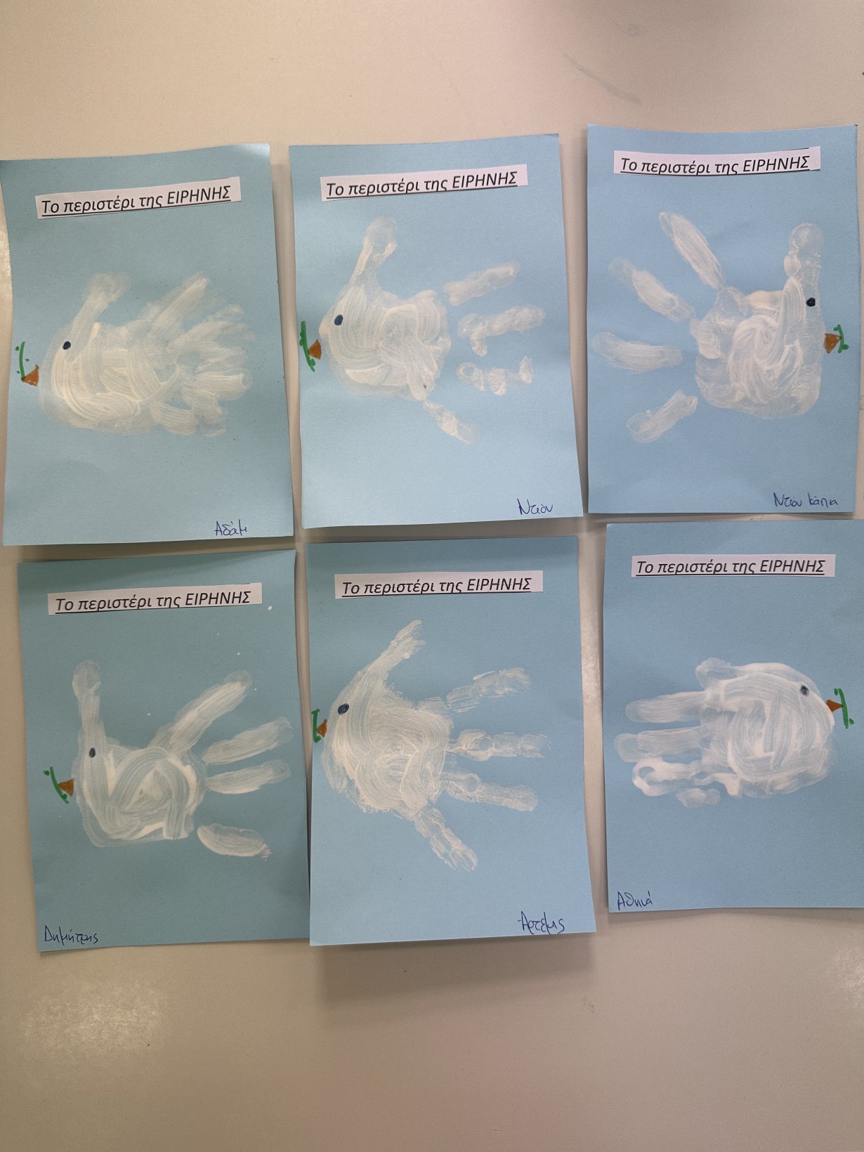 Με αφορμή την εθνική επέτειο του 1940, μιλήσαμε για τον πόλεμο και την ειρήνη, τι γνωρίζουν τα παδιά, τι συμβαίνει σε κάθε περίπτωση και συγκρίναμε τις δυο καταστάσεις. Είδαμε πίνακες ζωγραφικής σχετικά με το θέμα και αξιοποιώντας τη ρουτίνα σκέψης Βλέπω-Σκέφτομαι-Αναρωτιέμαι,τα παιδιά ονόμασαν ό,τι έβλεπαν και μοιράστηκαν τις σκέψεις και τα συναισθήματά τους…