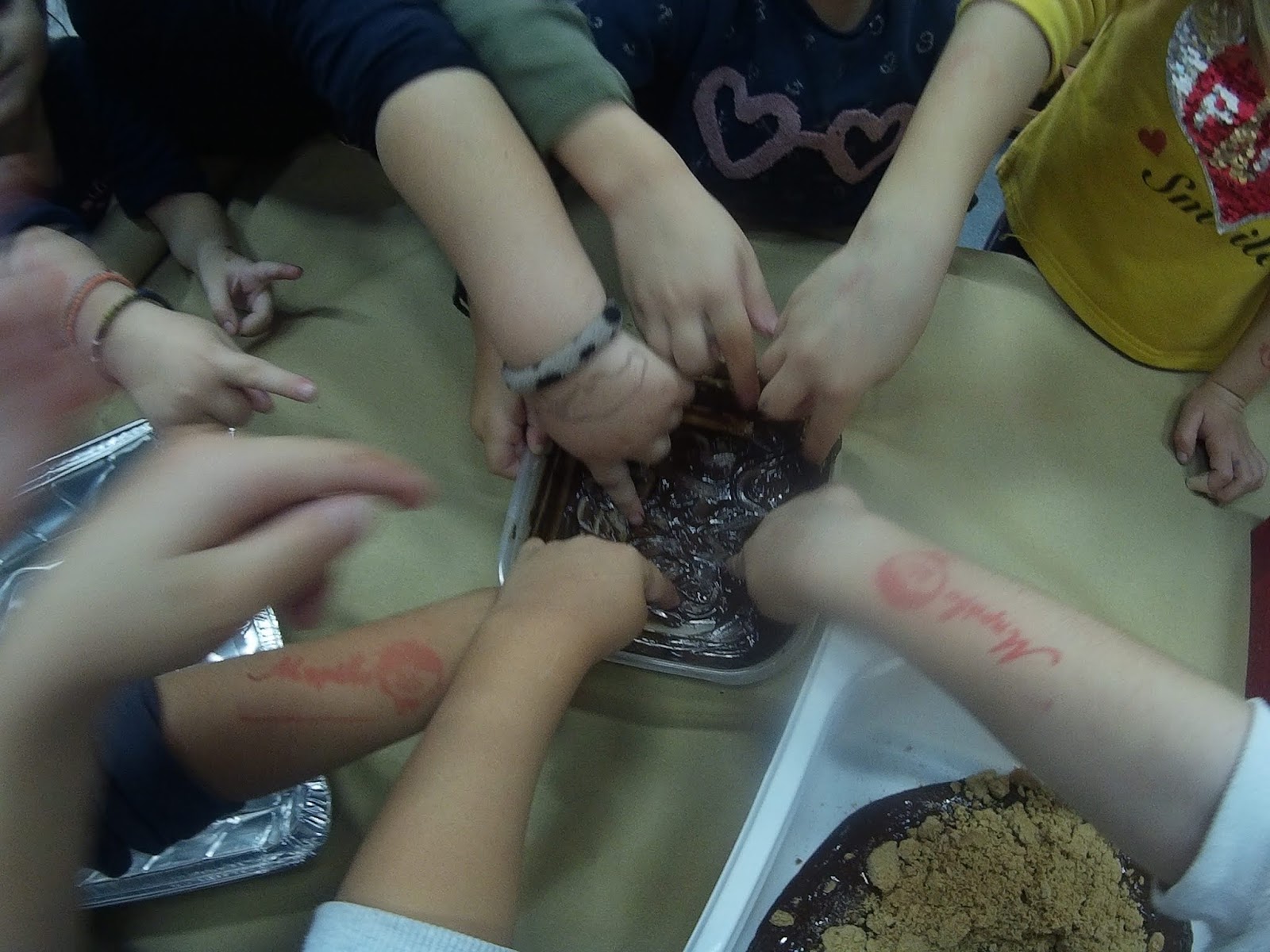 Συνέχεια ζαχαροπλαστικης……….. Σοκολάτα ονειρική, λερώσαμε χεράκια, δοκιμάσαμε σοκολάτα, βάλαμε μουστάκια και μούσι και στο τέλος έγινε και ο κορμός μμμμμμμμμμμμμμ!!
