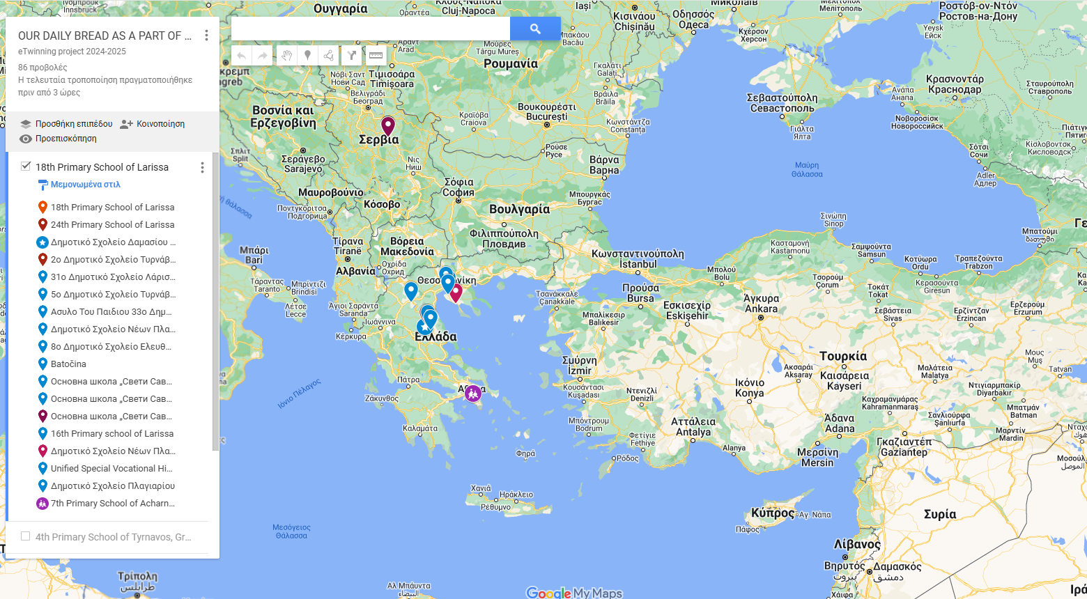 Το σχολείο μας και φέτος συμμετέχει στο ευρωπαϊκό πρόγραμμα eTwinning με τίτλο: “OUR DAILY BREAD AS A PART OF CULTURAL HERITAGE, WELL-BEING AND SUSTAINABILITY”, στο οποίο συμμετέχουν εκπαιδευτικοί και σχολεία από πέντε χώρες (Ελλάδα, Ιταλία, Τουρκία, Σερβία, Σλοβενία).