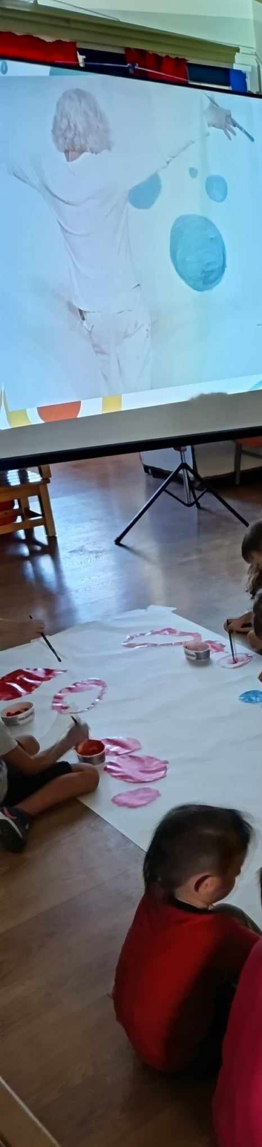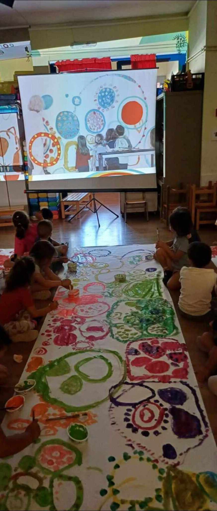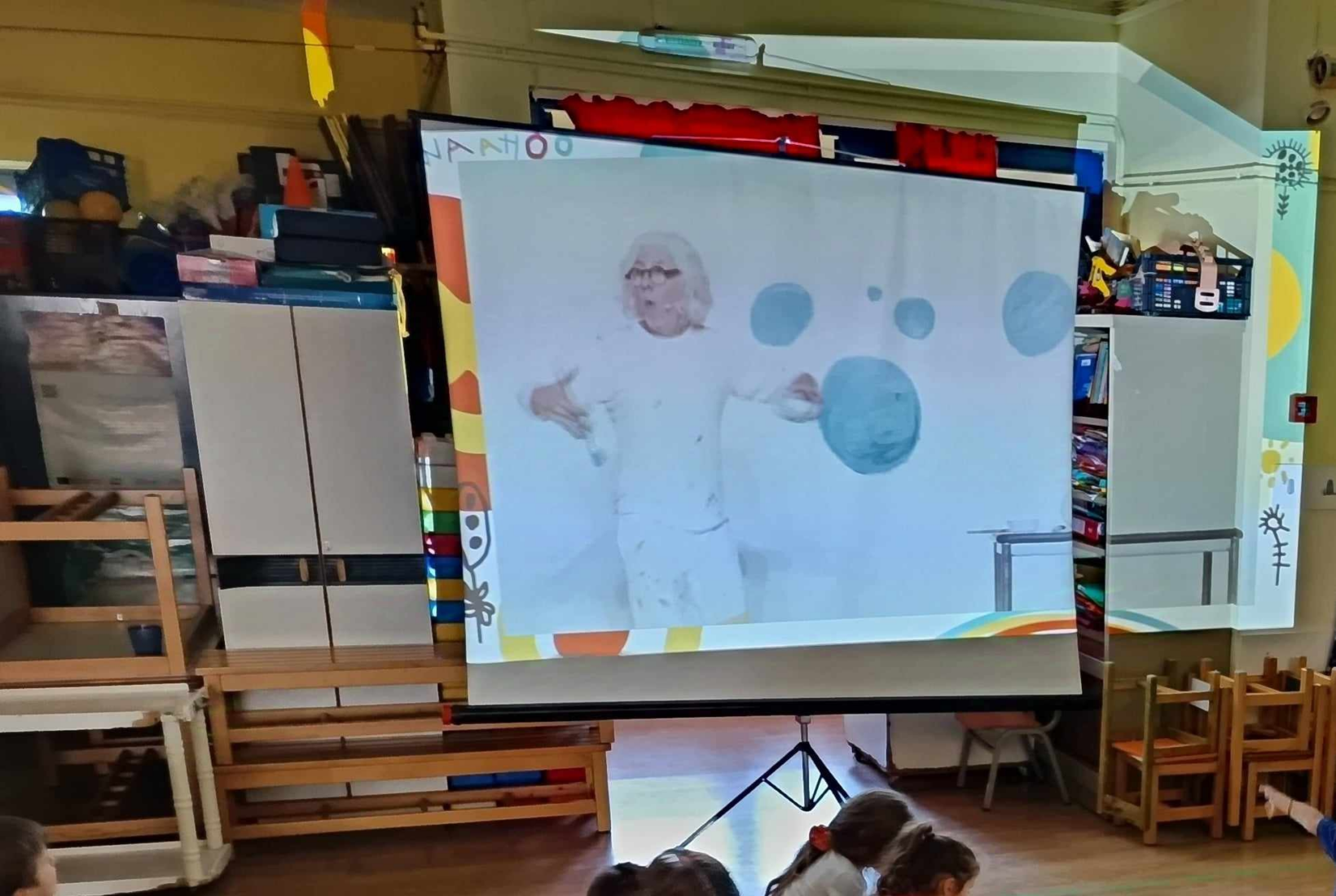 Την καθοδήγησε ο ίδιος ο Hervé Tullet, γάλλος εικαστικός- καλλιτέχνης και συγγραφέας (ανάμεσα σε άλλα) του μοναδικού και διαφορετικού βιβλίου «Ένα βιβλίο παιχνίδι»! Γνωρίσαμε το συγγραφέα και εικαστικό μέσα από σύγχρονη διαδικτυακή σύνδεση.