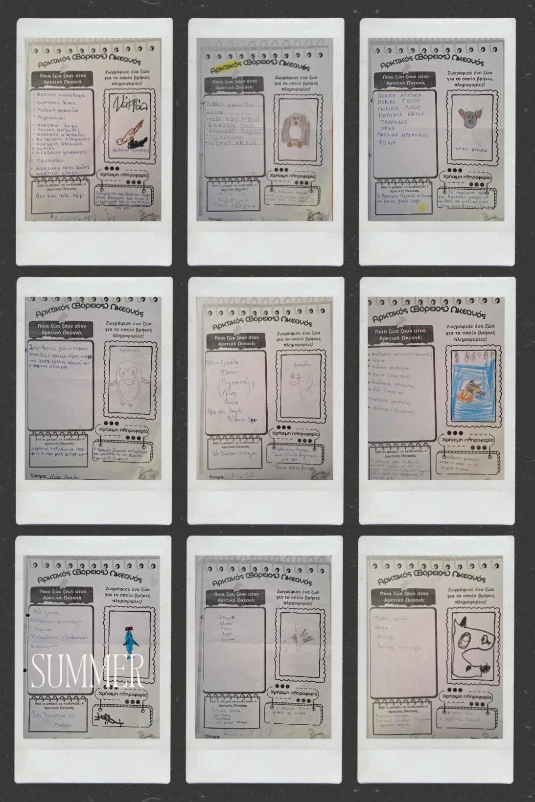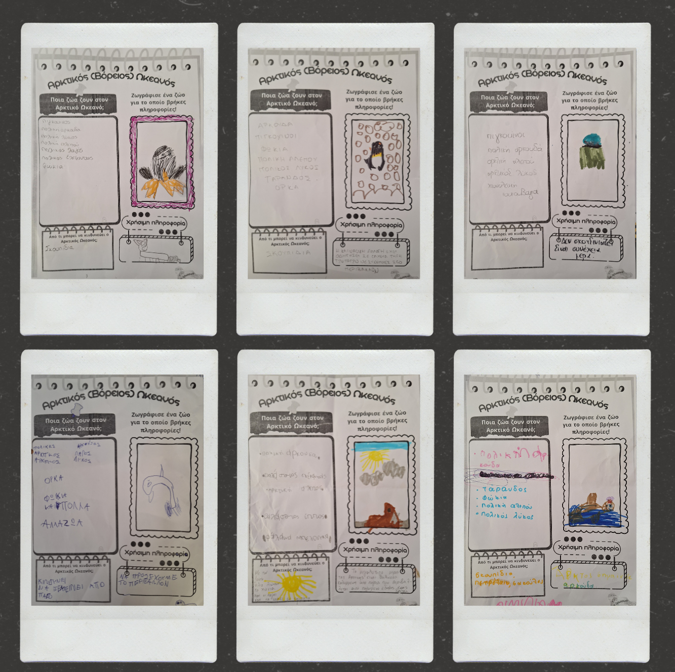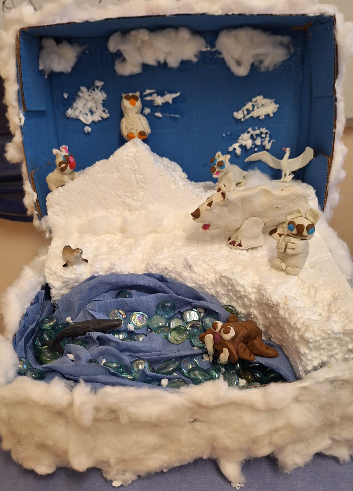 Μια από τις αγαπημένες μας δραστηριότητες ήταν η κατασκευή του διοράματος του Αρκτικού Ωκεανού. Δημιουργήσαμε μια αναπαράσταση, φτιάχνοντας με πλαστελίνη τα ζωάκια που ζουν εκεί και ότι υλικό είχαμε στην τάξη μας για το περιβάλλον που ζουν. Ζητήσαμε από όλα τα σχολεία του προγράμματος να ψηφίσουν το αγαπημένο τους.