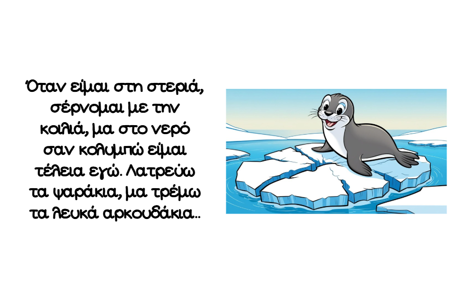 Ο Μιλού μας ζήτησε για άλλη μια φορά τη βοήθειά μας να καταλάβει φαινόμενα του Παγωμένου Ωκεανού. Δικιά μας αποστολή ήταν να του εξηγήσουμε με ποιον τρόπο τα ζώα που ζουν εκεί δεν κρυώνουν. Βρήκαμε λοιπόν την ευκαιρία να πειραματιστούμε!