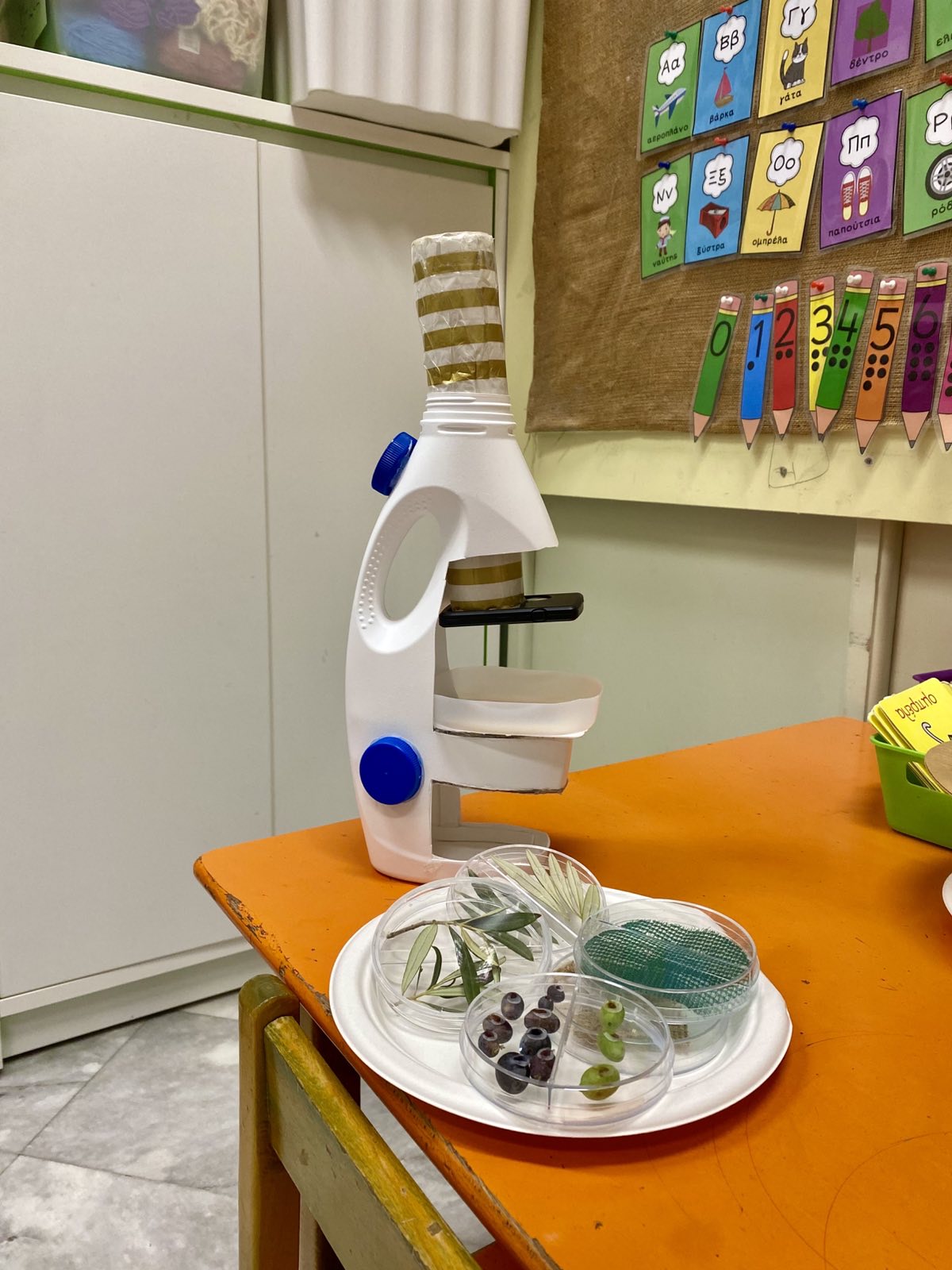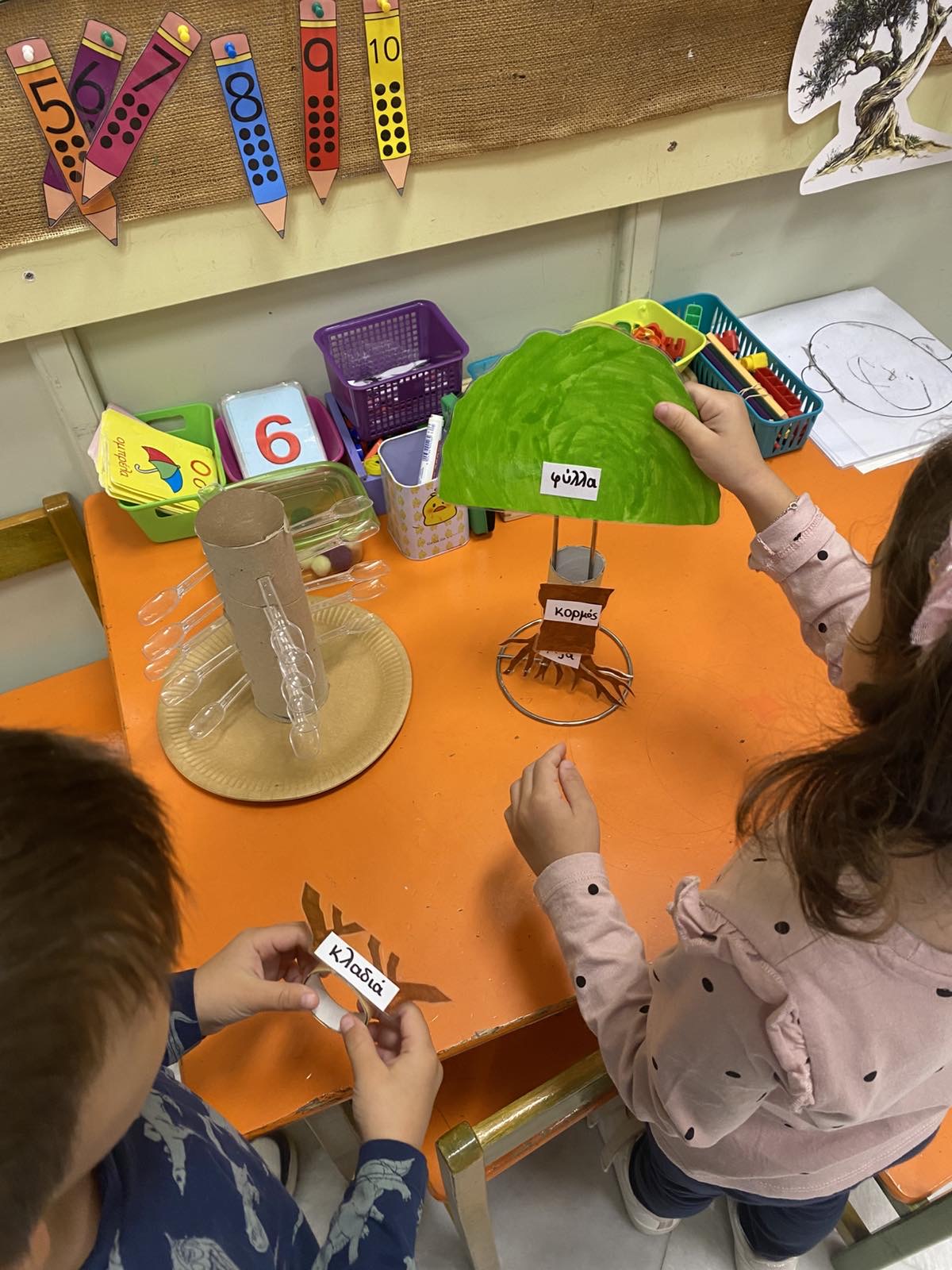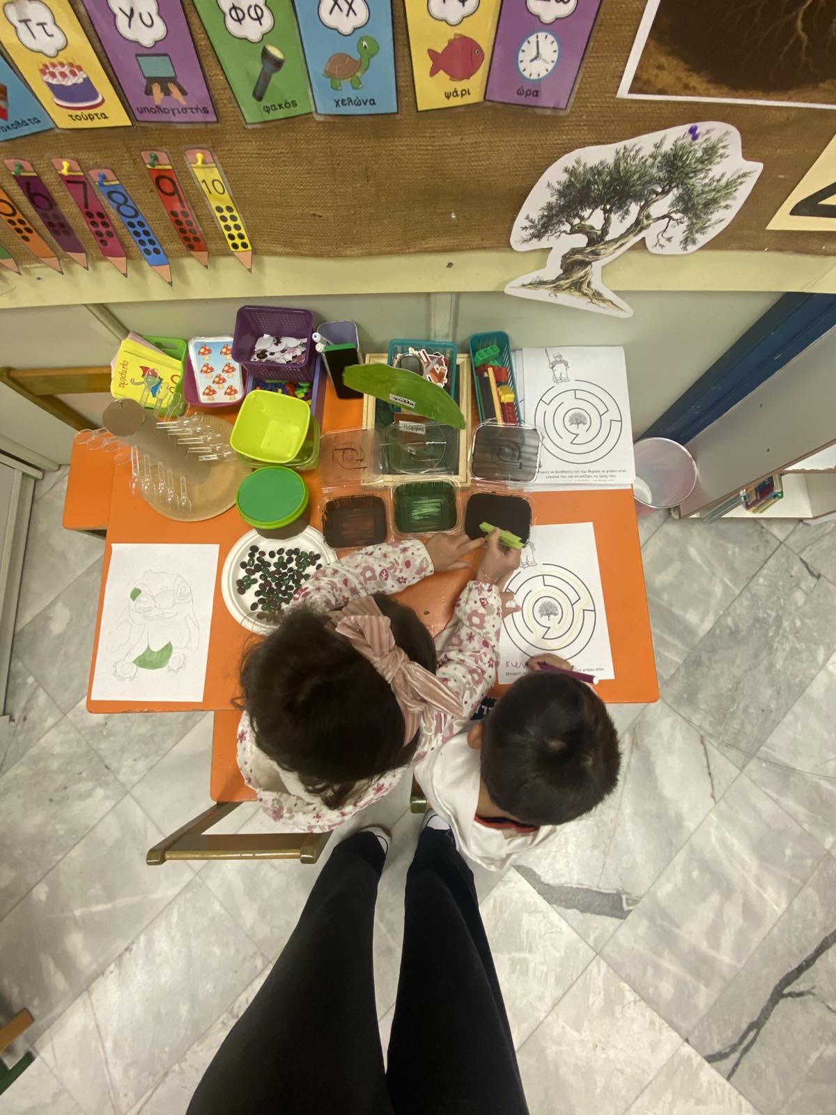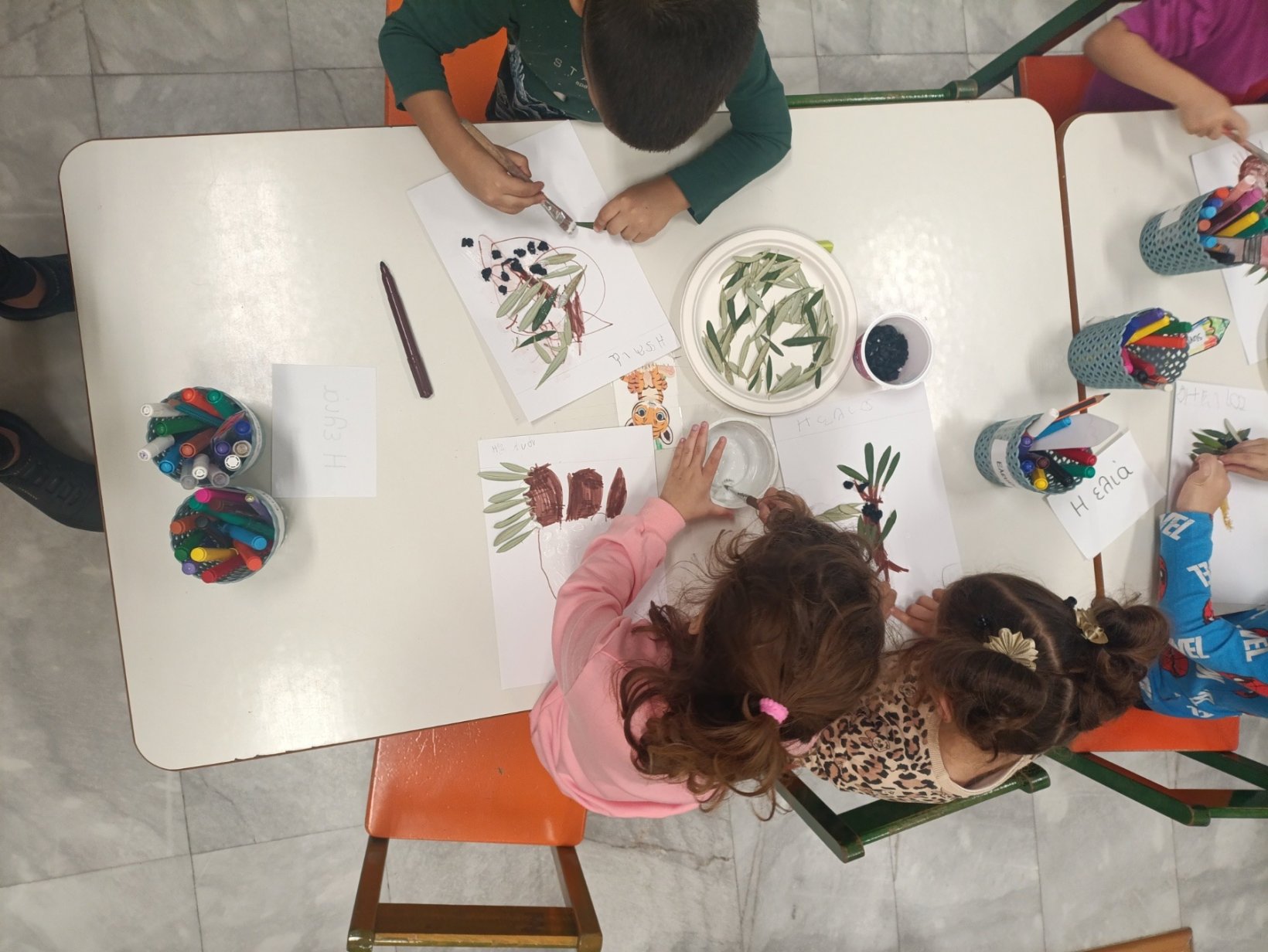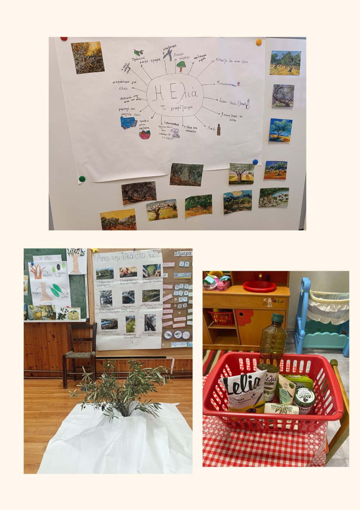 Στο πλαίσιο της θεματικής με τίτλο «Η Ελιά», οι μαθητές και οι μαθήτριες του Νηπιαγωγείου μας είχαν την ευκαιρία να παρατηρήσουν, να περιγράψουν και να συζητήσουν το πλούσιο υλικό (φωτογραφίες, καρπούς ελιάς, κλαδιά από δέντρο ελιάς κλπ. ),να ανακαλύψουν προϊόντα που έχουν ως πρώτη ύλη τις ελιές και το ελαιόλαδο και να καταθέσουν τις προσωπικές εμπειρίες τους σχετικά με το μάζεμα της ελιάς και τη διαδικασία παραγωγής ελαιολάδου. Τέλος, μέσω του παιχνιδιού, του πειραματισμού και της δημιουργίας τα παιδιά συμμετείχαν ενεργά και με μεγάλο ενθουσιασμό, σε ένα όμορφο βιωματικό ταξίδι.