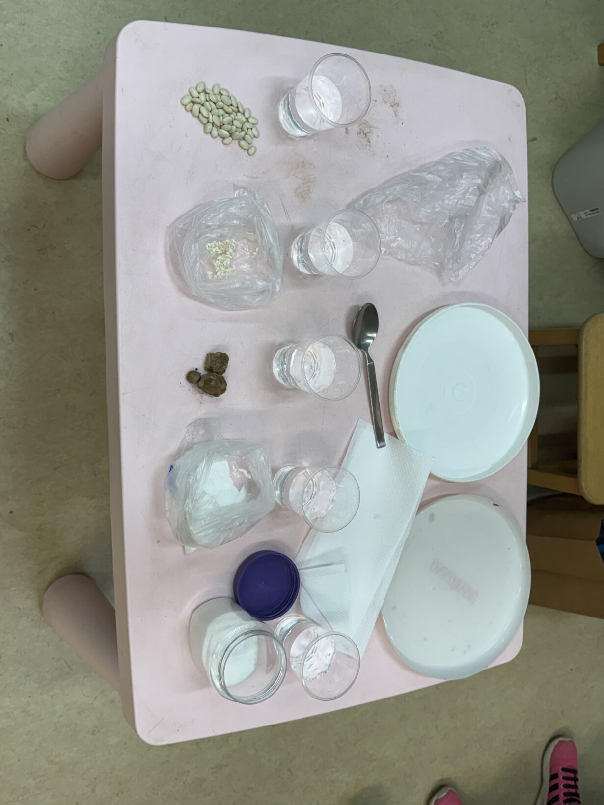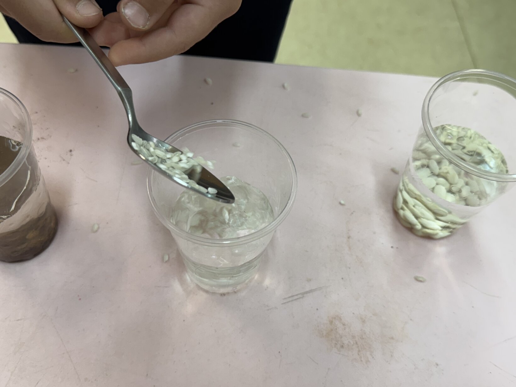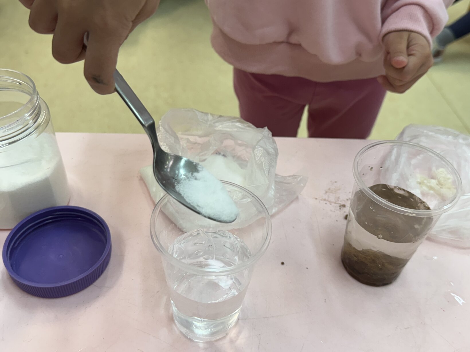Πειραματιστήκαμε με διάφορα υλικά… Πρώτα κάναμε υποθέσεις και μετά διαπιστώσαμε ποια από αυτά τα υλικά διαλύονται στο νερό και ποια όχι…