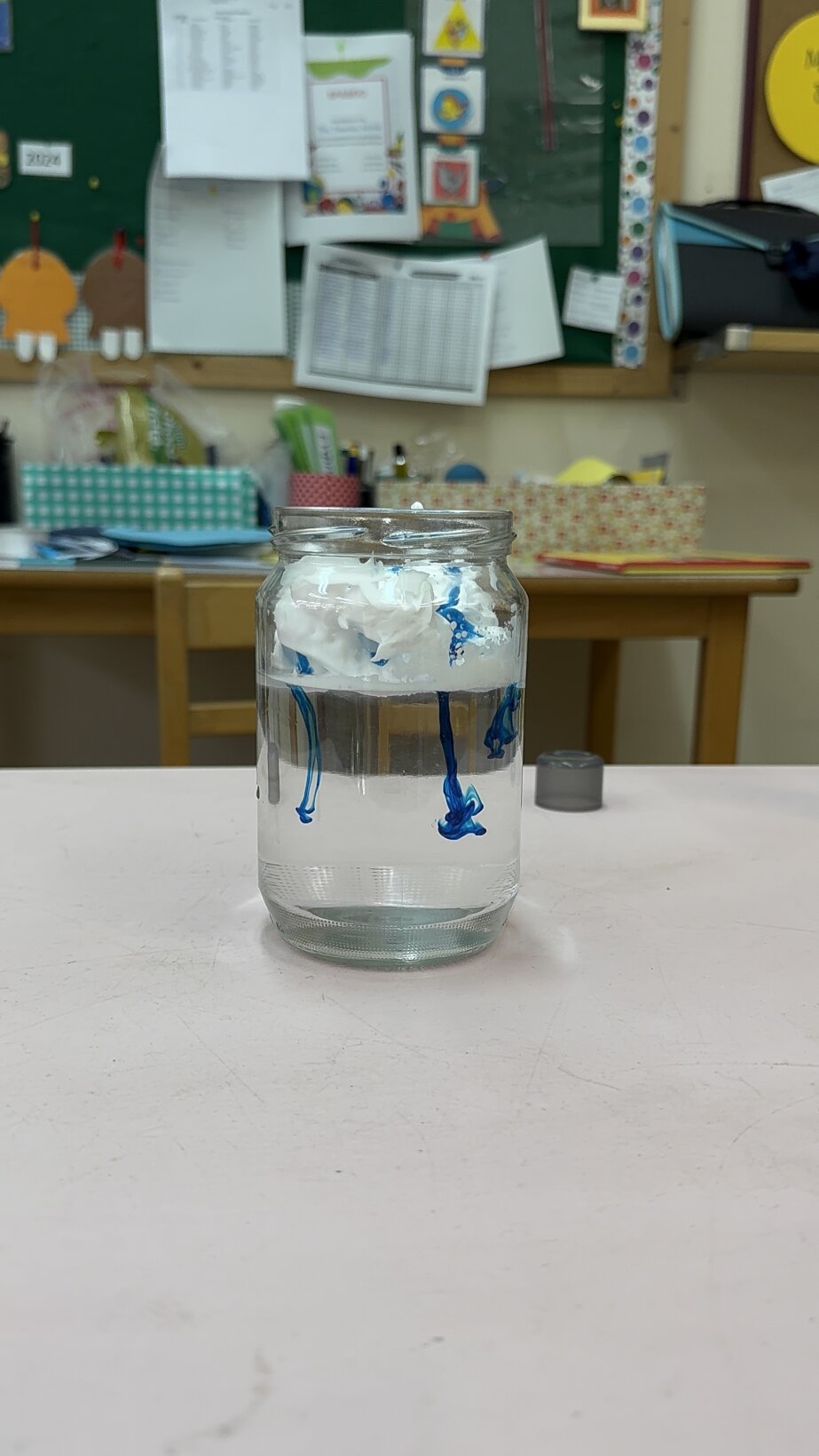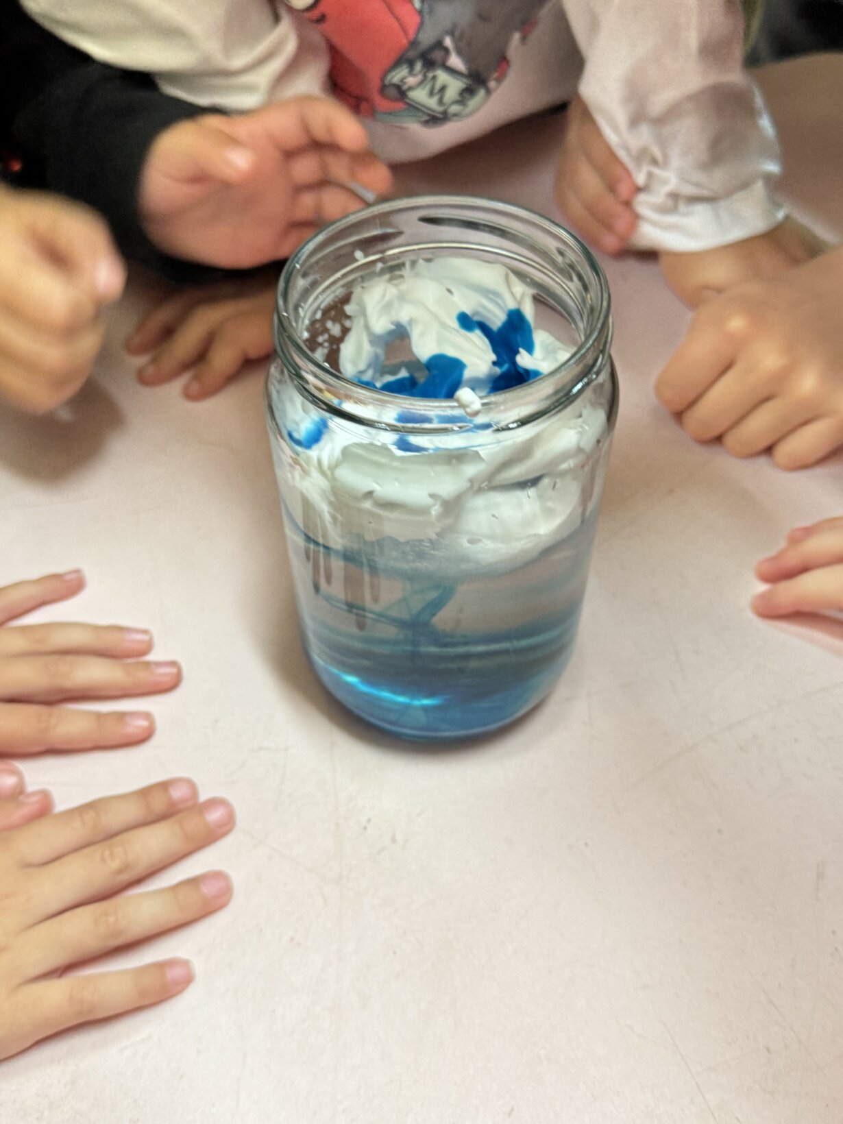 Δημιουργώντας βροχή με αφρό ξυρίσματος, νερό και χρώμα ζαχαροπλαστικής…