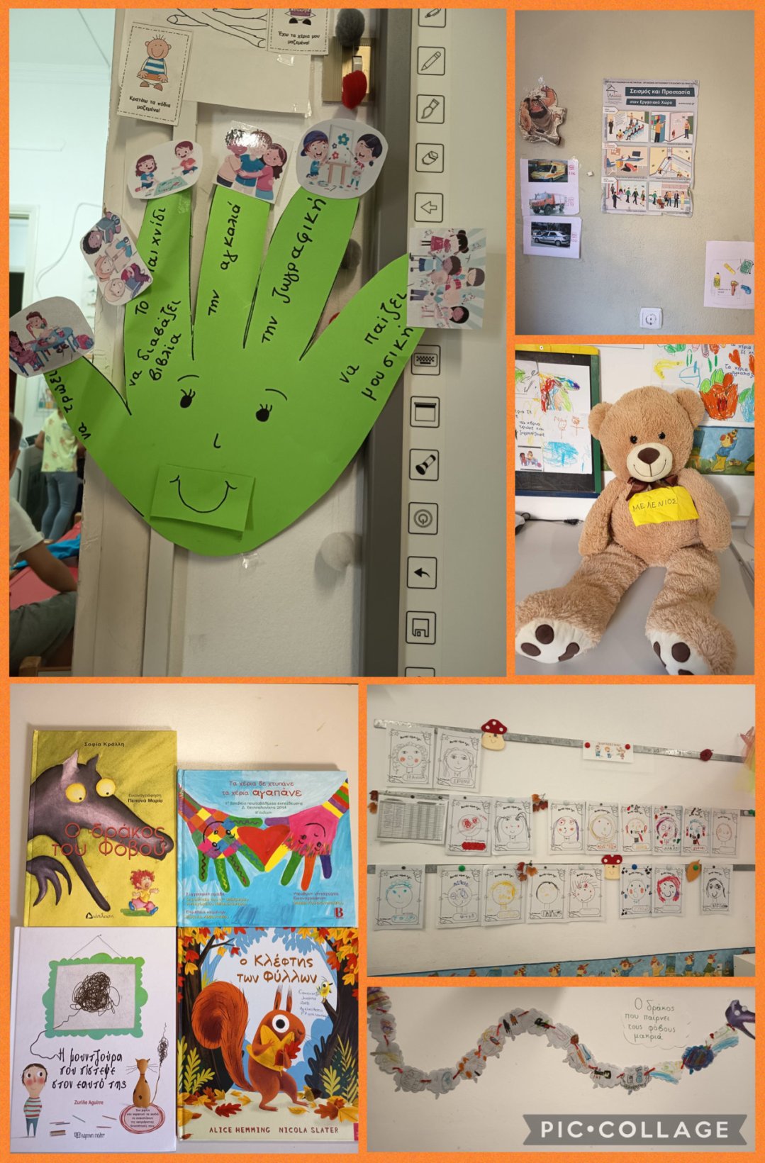 Διαβάσαμε παραμύθια, γνωρίσαμε τα παιδιά του φθινοπώρου και τις αλλαγές που φέρνει αυτή η όμορφη εποχή. Καλωσορίσαμε και τη μασκότ της τάξης μας, που θα μας συντροφεύει σε όλη τη χρονιά, και παίξαμε κουκλοθέατρο με δακτυλοκούκλες. Βγήκαμε στην αυλή και παίξαμε τα πρώτα μας ομαδικά παιχνίδια, γεμάτα χαρά και γέλιο.