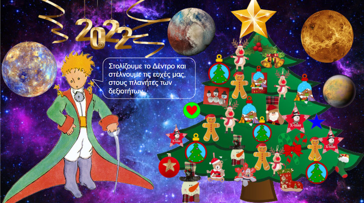 Συνεργατική διαδραστική αφίσα: Τα παιδιά από τον πλανήτη Γη στέλνουν ευχές και κάλαντα στους κατοίκους των πλανητών των δεξιοτήτων
