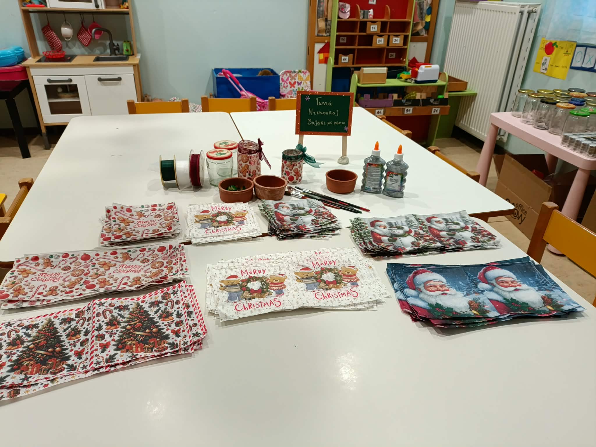 Στο νηπιαγωγείο μας όλα είναι πλέον στη θέση τους και περιμένουν! Αύριο, γονείς και μαθητές θα δημιουργήσουμε μαζί σε ένα ζεστό, γιορτινό και χαρούμενο εργαστήρι, γεμάτο χρώματα, φαντασία και χριστουγεννιάτικη μαγεία.
