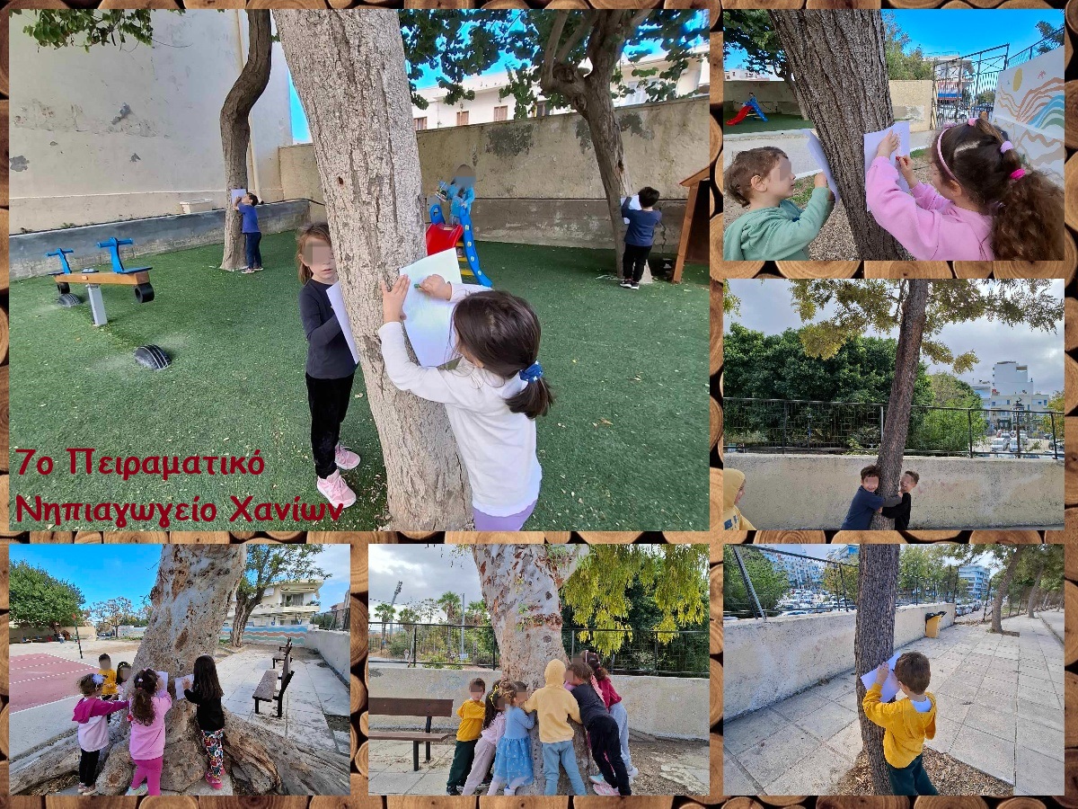 Μεγάλη γιορτή για το νηπιαγωγείο μας αυτή η μέρα! Αγκαλιάσαμε τα δέντρα της αυλής τους και εκείνα μας χάρισαν τις ιστορίες τους! Τις ζωγραφίσαμε πάνω στα αποτυπώματα των κορμών τους και μάθαμε όλα όσα κάνουν τα δέντρα μας χαρούμενα! Ανακαλύψαμε επίσης τους θησαυρούς της φύσης που κρύβονται στην αυλή μας, την καθαρίσαμε, την φροντίσαμε και διασκεδάσαμε κάνοντας μάθημα έξω από την τάξη!