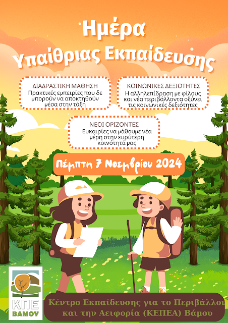 Η Διεθνής Ημέρα Υπαίθριας Εκπαίδευσης ξεκίνησε στη Βρετανία το 2012 κι έχουν συμμετάσχει μέχρι σήμερα πάνω από 10 εκατομμύρια μαθητές σε 170 χώρες. Διεθνείς έρευνες έχουν δείξει ότι η υπαίθρια εκπαίδευση συμβάλλει στην ανάπτυξη κοινωνικών δεξιοτήτων των παιδιών, ενισχύει τη δυνατότητα επίλυσης προβλημάτων και τις δεξιότητες δημιουργίας ομάδας και, βέβαια, είναι διασκεδαστική για τα παιδιά. Τα μαθήματα που γίνονται στην ύπαιθρο είναι μια σημαντική βιωματική εμπειρία που συχνά μας ακολουθεί μια ζωή. Το ενεργητικό και φυσικό παιχνίδι, το παιχνίδι στη φύση είναι ο πρωταρχικός τρόπος με τον οποίο μαθαίνουν τα παιδιά.