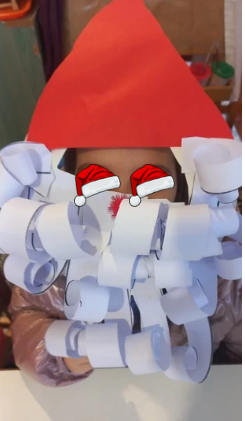Μια απλή μάσκα Άγιου Βασίλη κατασκεύασαν τα παιδιά πριν μερικές μέρες. Ο βασικότερος στόχος ήταν να μετατραπούν οι απλές λωρίδες από χαρτί που έκοψαν τα ίδια τα παιδιά, σε γενιά γυριστά του Άγιου Βασίλη. Ήθελε δεξιότητα και επιμονή η όλη διαδικασία με το μολύβι. Κάποιοι το έκαναν και με το χέρι τους. Το κάθε παιδί βρήκε το δικό του τρόπο στο τέλος για να πετύχει αυτό που ήθελε.