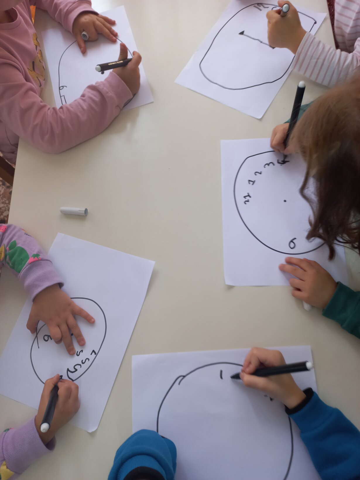 Μισή ώρα και όχι σε καθημερινή βάση!!! Τα παιδιά παρατήρησαν ένα αναλογικό ρολόι και το αποτύπωσαν στο χαρτί. Στη συνέχεια, για να γίνει κατανοητή η έννοια της μισής ώρα, οργανώθηκαν διάφορες δραστηριότητες μέσα στην τάξη. Και ιδού το αποτέλεσμα: