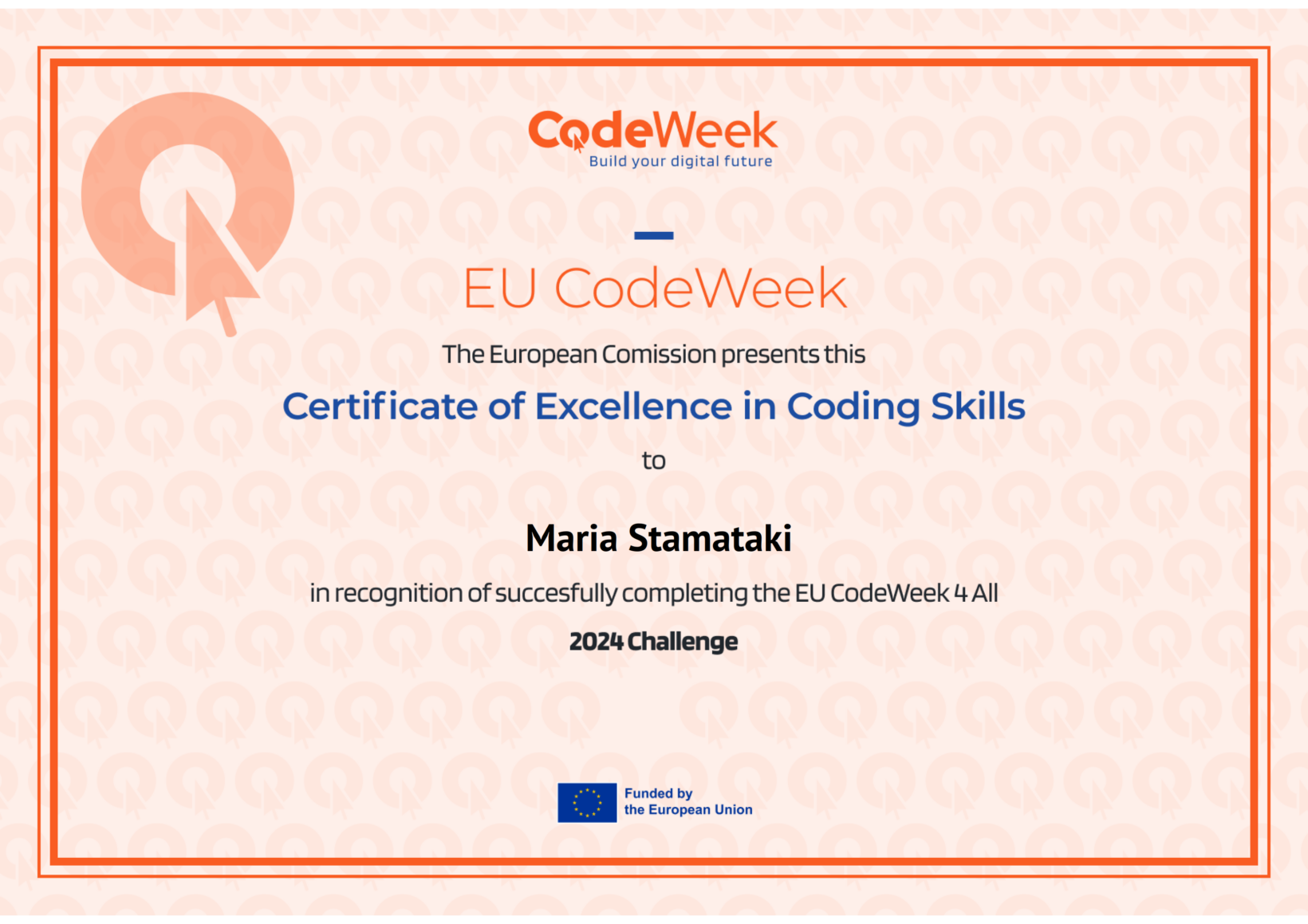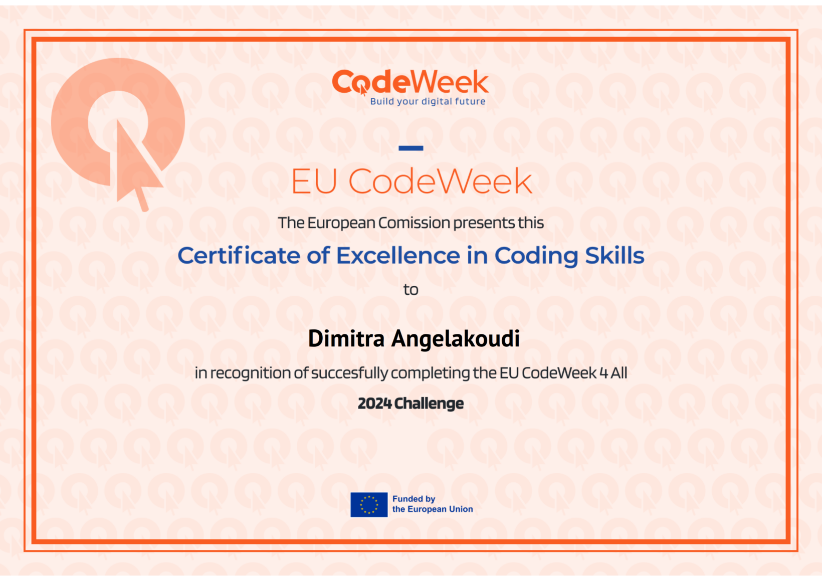 Για την ολοκλήρωση της πρόκλησης «Εβδομάδα Προγραμματισμού για Όλους» μέσα από τη e Twinning συμμαχία “STEAM mystery!- Find my shadow!” λάβαμε και πιστοποιητικό αριστείας.