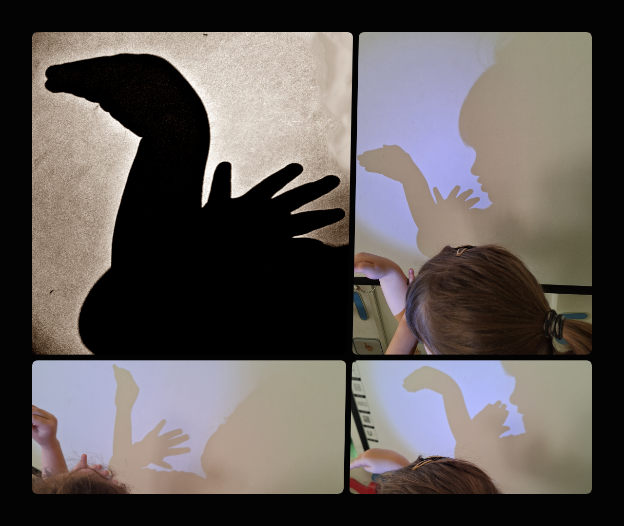Μαζί με του φίλους μας παίζουμε με το φως και δημιουργούμε με τα χέρια μας εικόνες ζώων. Έπειτα, τις συγκεντρώνουμε σε εικονική έκθεση.