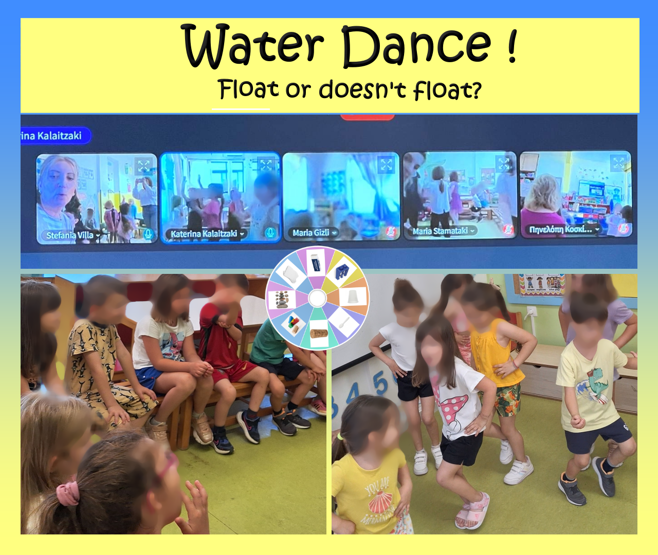 - Water Dance: Συναντιόμαστε και χορεύουμε μαζί: Συναντηθήκαμε διαδικτυακά με τους φίλους μας από το Νηπιαγωγείο Castellone ICS Alighieri Formia της Ιταλίας, το 1ο Πειραματικό Ιεράπετρας, το 6ο Νηπιαγωγείο Κατερίνης, το 2ο Νηπιαγωγείο Αλιάρτου και χορέψαμε μαζί το χορό του νερού. Γυρίζαμε τον τροχό της τύχης που απεικόνιζε διάφορα αντικείμενα και αν το αντικείμενο που έτυχε επέπλεε χορεύαμε, εαν βούλιαζε καθόμασταν στη θέση μας! Περάσαμε υπέροχα!