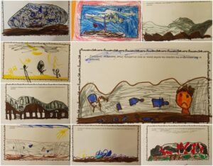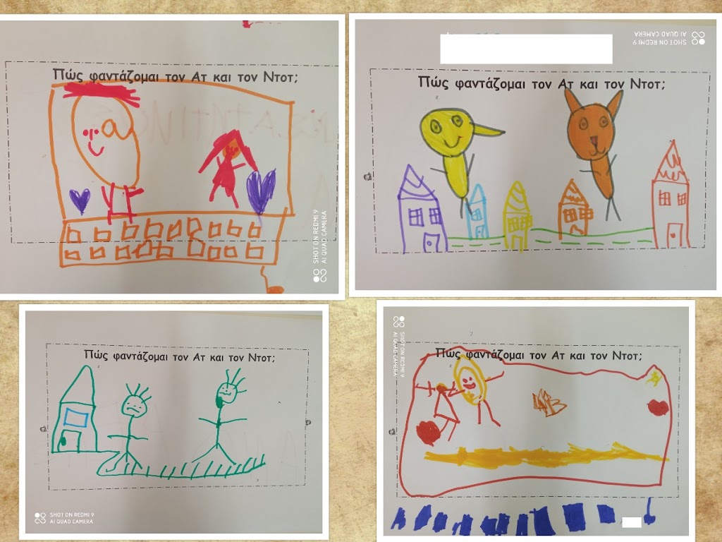 Επιστρέφοντας στο νηπιαγωγείο τα παιδιά περιέγραψαν την εμπειρία τους στους συμμαθητές τους που έμειναν πίσω και αποτύπωσαν στο χαρτί ό,τι τους έκανε εντύπωση από πρώτη τους επίσκεψη στο Δημοτικό.