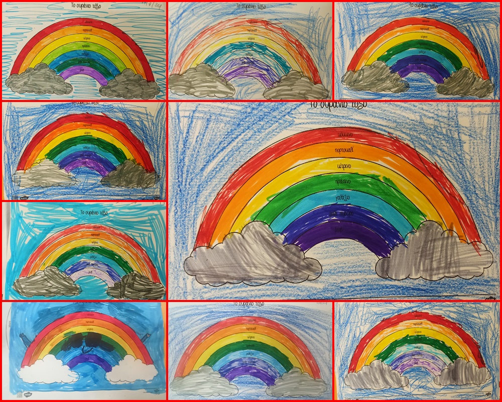 Ξεκινήσαμε τις δράσεις μας με το παραμύθι του twinkl “Το αγόρι και το ουράνιο τόξο” προκειμένου τα παιδιά να γνωρίσουν το ουράνιο τόξο και να μάθουν τη σειρά των χρωμάτων του