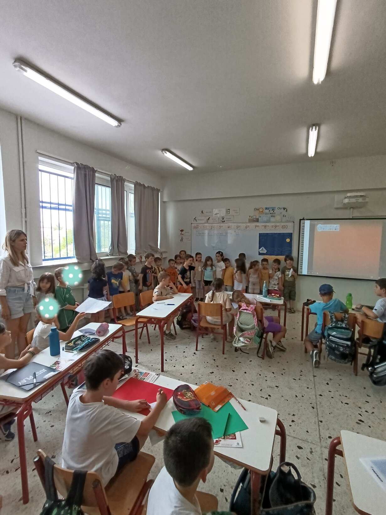 Την Πέμπτη 6-6-2024 οι μαθητές/μαθήτριες του σχολείου μας, επισκέφθηκαν το 8ο Δημοτικό Σχολείο Κηφισιάς. Είχαν πολλές απορίες να λύσουν, έτσι ετοίμασαν μία λίστα με ερωτήσεις για τους μαθητές και τις δασκάλες της 1ης Δημοτικού. Όλοι ήταν πρόθυμοι να απαντήσουν στις ερωτήσεις μας και σε ένα κλίμα φιλίας και αποδοχής ανταλλάξαμε ζωγραφιές . Μας αποχαιρέτησαν με ένα όμορφο τραγούδι και δώσαμε ραντεβού το Σεπτέμβρη!