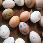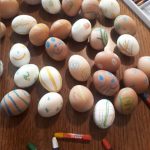 κόκκινα αυγά και σχέδια με λαδοπαστέλ