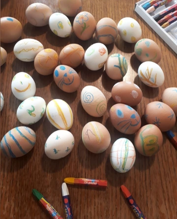 κόκκινα αυγά και σχέδια με λαδοπαστέλ