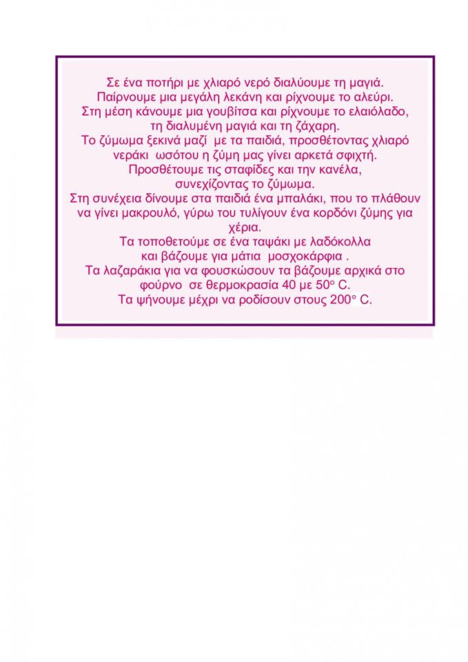Το Σάββατο του Λαζάρου ουσιαστικά σηματοδοτεί την έναρξη της Πασχαλινής περιόδου με το έθιμο να περιλαμβάνει τα Λαζαράκια που φτιάχνονται στο κάθε σπίτι και με αυτά τα παιδιά τραγουδούσαν τα κάλαντα του Λαζάρου στις γειτονιές . Έτσι λοιπόν παρακάτω θα βρείτε την συνταγή σε μορφή που μπορεί να διαβαστεί μαζί με το παιδί και το τραγούδι σε μία όμορφη παραδοσιακή απόδοση με υπότιτλους για να το τραγουδήσετε με τα παιδιά . Καλή διασκέδαση.