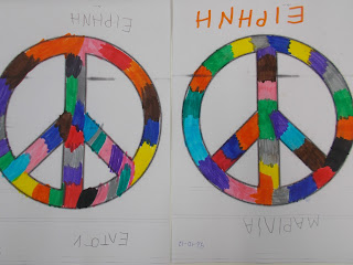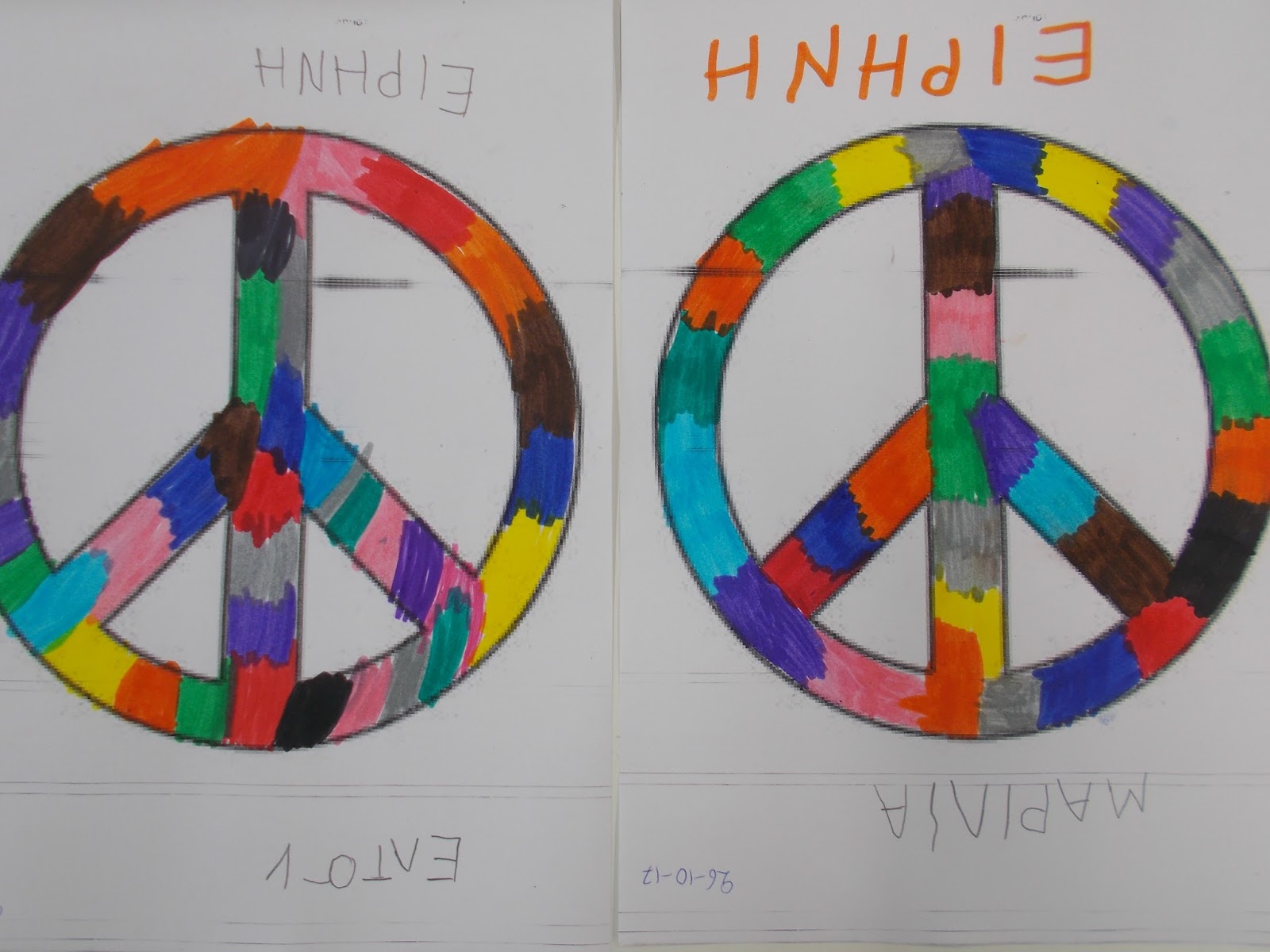 Παίξαμε κουκλοθέατρο (Το κανόνι της ειρήνης) και στην συνέχεια φτιάξαμε την δική μας ομαδική με το δικό μας κανόνι που πετάει καρδιές και λουλούδια.Μία άλλη ομάδα έφτιαξε το σύμβολο της ειρήνης ενώ κάποια παιδιά ζωγράφισαν τα σύμβολα της Ειρήνης ,το σήμα και το περιστέρι.