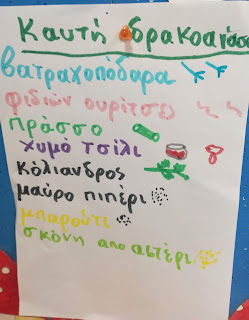 Με αφορμή το παραμύθι “Μπέτση, η μικρή μάγισσα-σεφ” που ενθουσίασε τα παιδιά, κατασκευάσαμε τα απαραίτητα αντικείμενα για να δραματοποιήσουμε και να παίξουμε κι εμείς μέσα στην ιστορία. Φτιάξαμε τη σούπα, τα σερβίτσια, στρώσαμε το τραπέζι, βρήκαμε την κατάλληλη μουσική. Μας σέρβιρε η μάγισσα και το δείπνο ξεκίνησε…