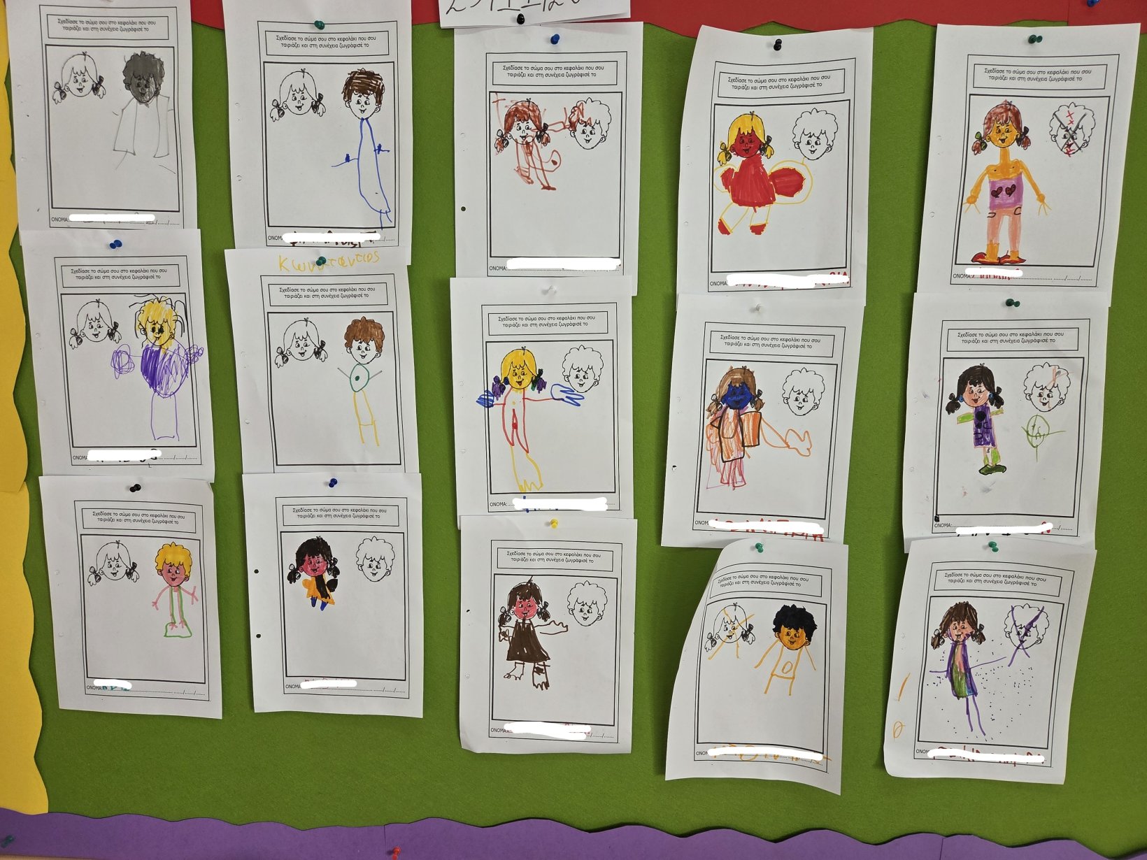 Προκειμένου να επιτευχθούν οι αρχικοί μας στόχοι διαβάσαμε παραμύθια που σχετίζονται με τα δικαιώματα των παιδιών, όπως το παραμύθι ΤΑ ΠΑΠΟΥΤΣΙΑ ΤΩΝ ΆΛΛΩΝ, παρακολουθήσαμε εκπαιδευτικά βίντεο με παιδιά από άλλες χώρες, ακούσαμε τραγούδια που τα χορέψαμε ομαδικά και φτιάξαμε το εικονόλεξο του τραγουδιού ΑΝ ΌΛΑ ΤΑ ΠΑΙΔΙΑ ΤΗΣ ΓΗΣ. Στο τέλος για την εμπέδωση του συγκεκριμένου θέματος παίξαμε online παιχνίδια στο wordwall.