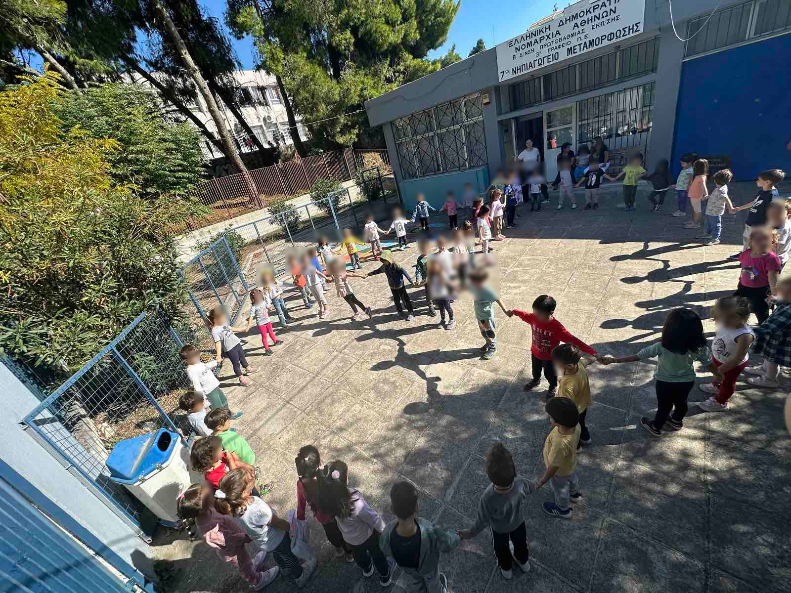 Στο πλαίσιο των δράσεων για την ενίσχυση των σχέσεων μεταξύ των μαθητών οι μικροί μας μαθητές έκαναν όλοι μαζί πικ νικ στην αυλή και σχημάτισαν με τα σώματά τους το σύμβολο της ειρήνης. Στην ομαδική τους ζωγραφιά το κανόνι της ειρήνης εκτόξευσε λουλούδια που ζωγράφισαν τα παιδιά.
