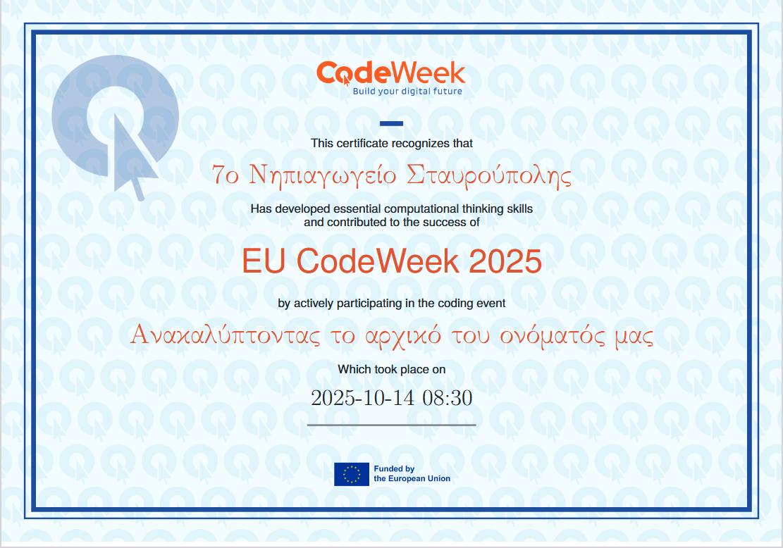 Ευρωπαϊκή Εβδομάδα Κώδικα 2025 (EU Code Week) στο νηπιαγωγείο μας! Συγχαρητήρια σε όλα τα παιδιά μας, που συμμετείχαν με χαρά!