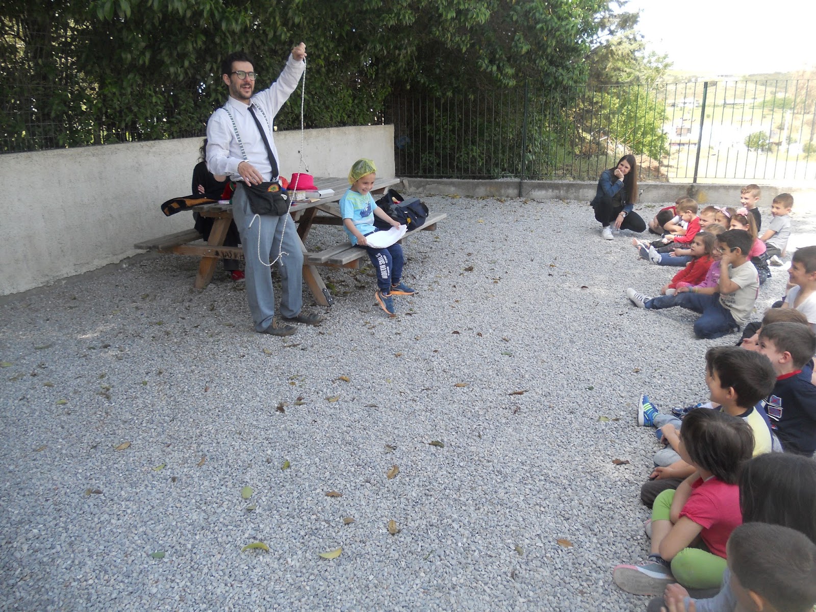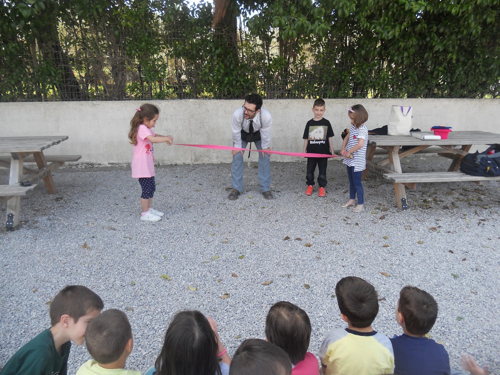Σήμερα στο σχολείο περίμενε τα παιδιά μια έκπληξη. Η ξαφνική επίσκεψη ενός ταχυδακτυλουργού από την θεατρική ομάδα ταχυδακτυλουργών “Τα δελφινάκια”.