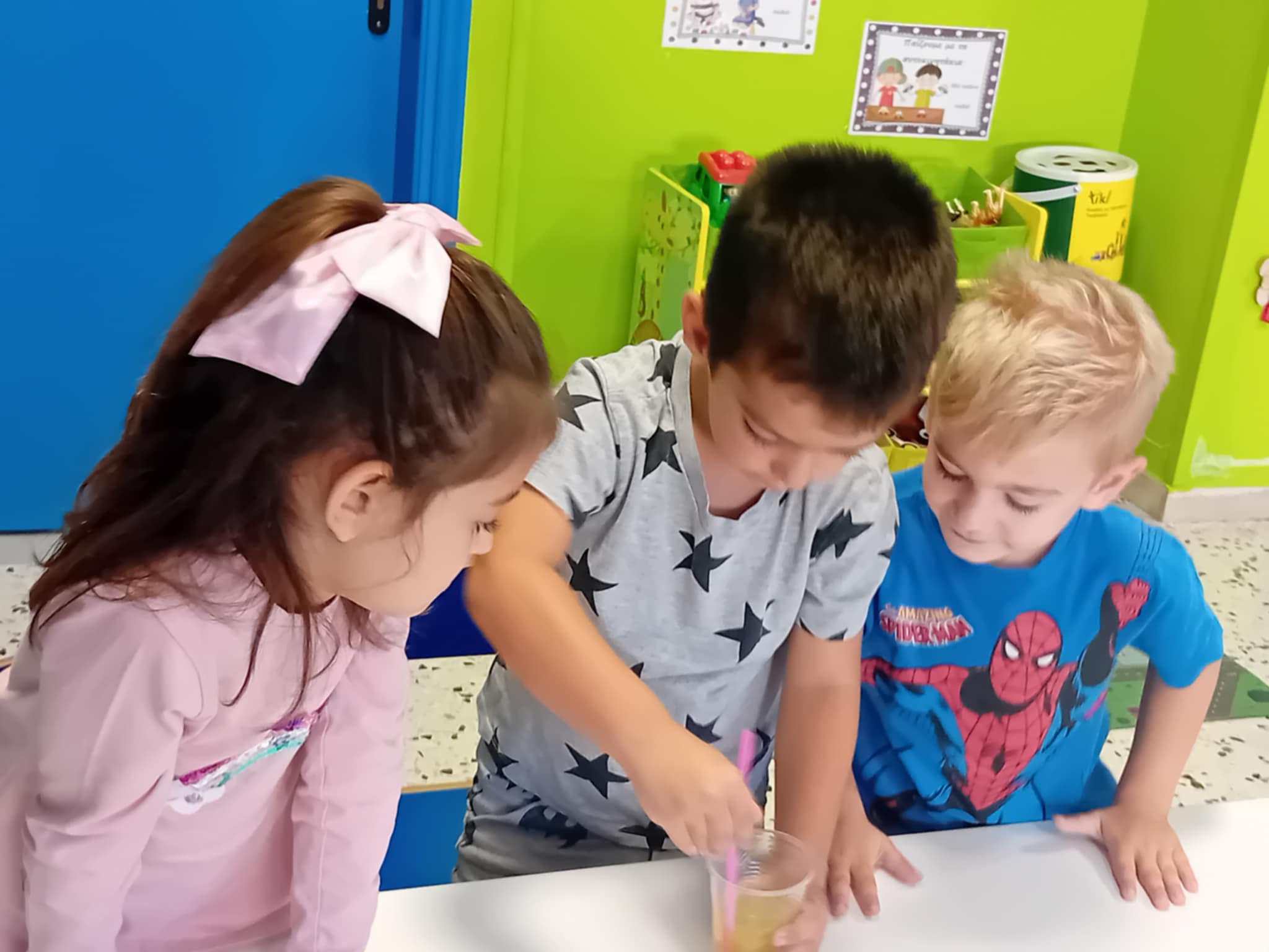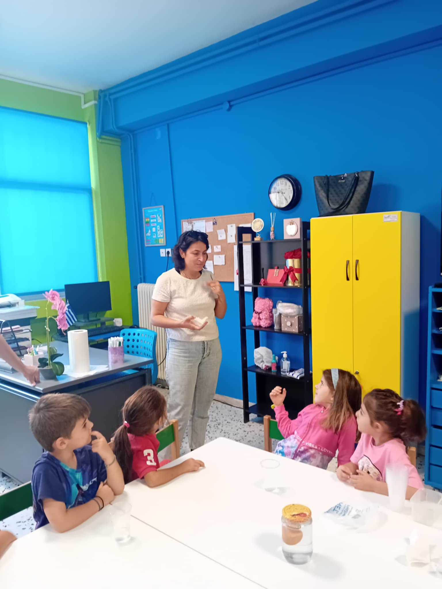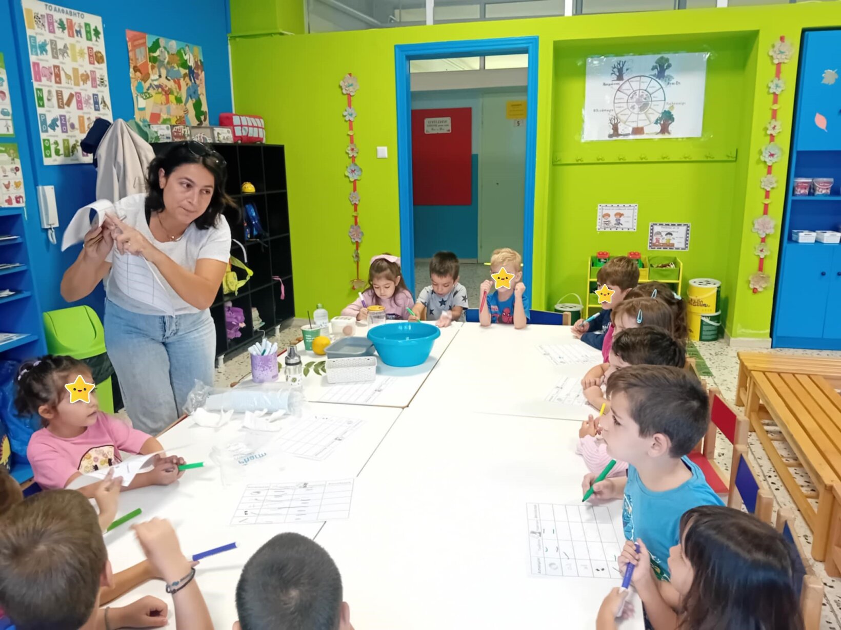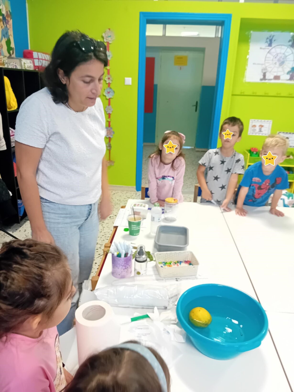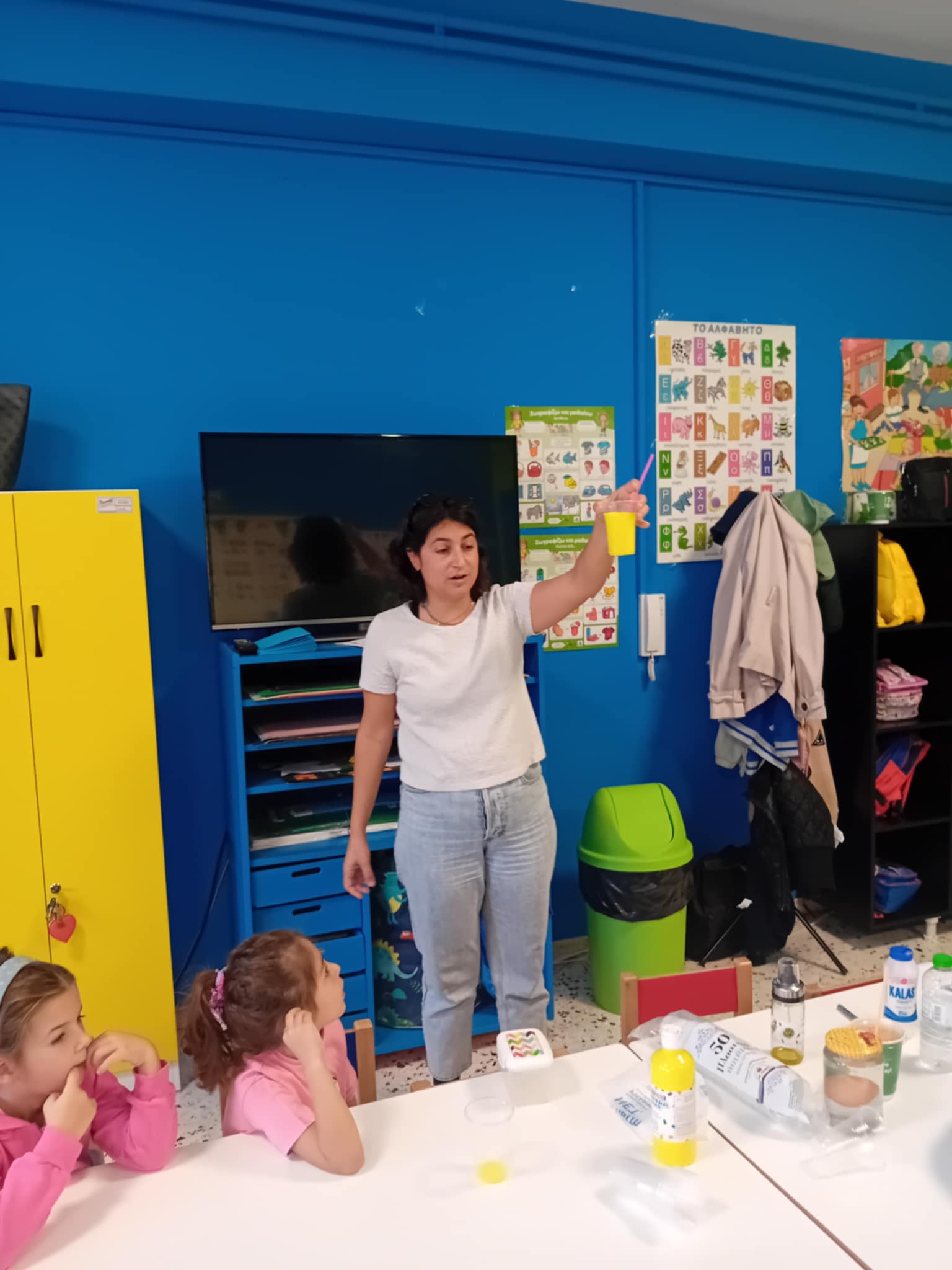 Σήμερα 16 Οκτωβρίου η Χημικός κα. Στέλλα Λεγάκη μαμά μαθήτριας του σχολείου μας επισκέφθηκε το νηπιαγωγείο μας και πραγματοποίησε μια σειρά πειραμάτων σχετικά με την πλεύση και την διαλυτότητα διάφορων αντικειμένων στα πλαίσια των Εργαστήριων Δεξιοτήτων με θέμα “Ο κύκλος του νερού”