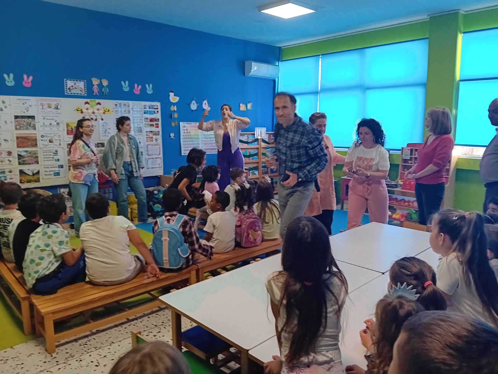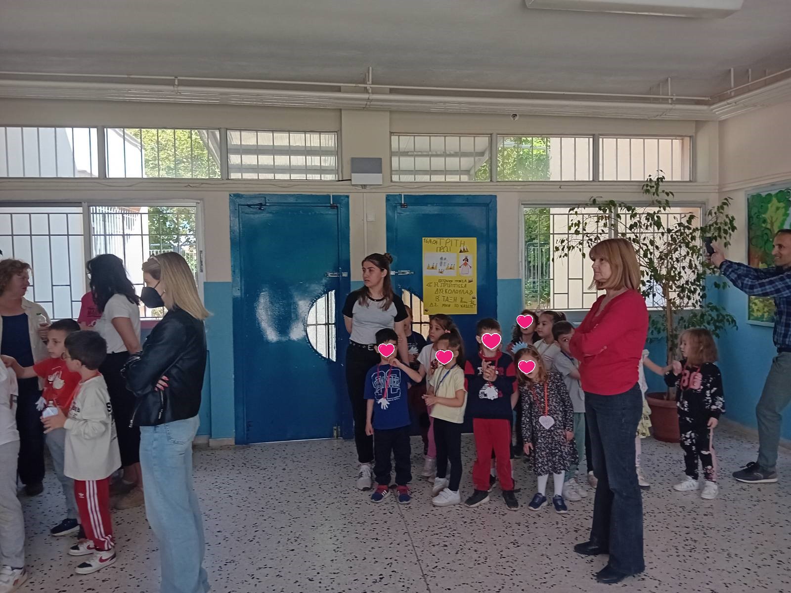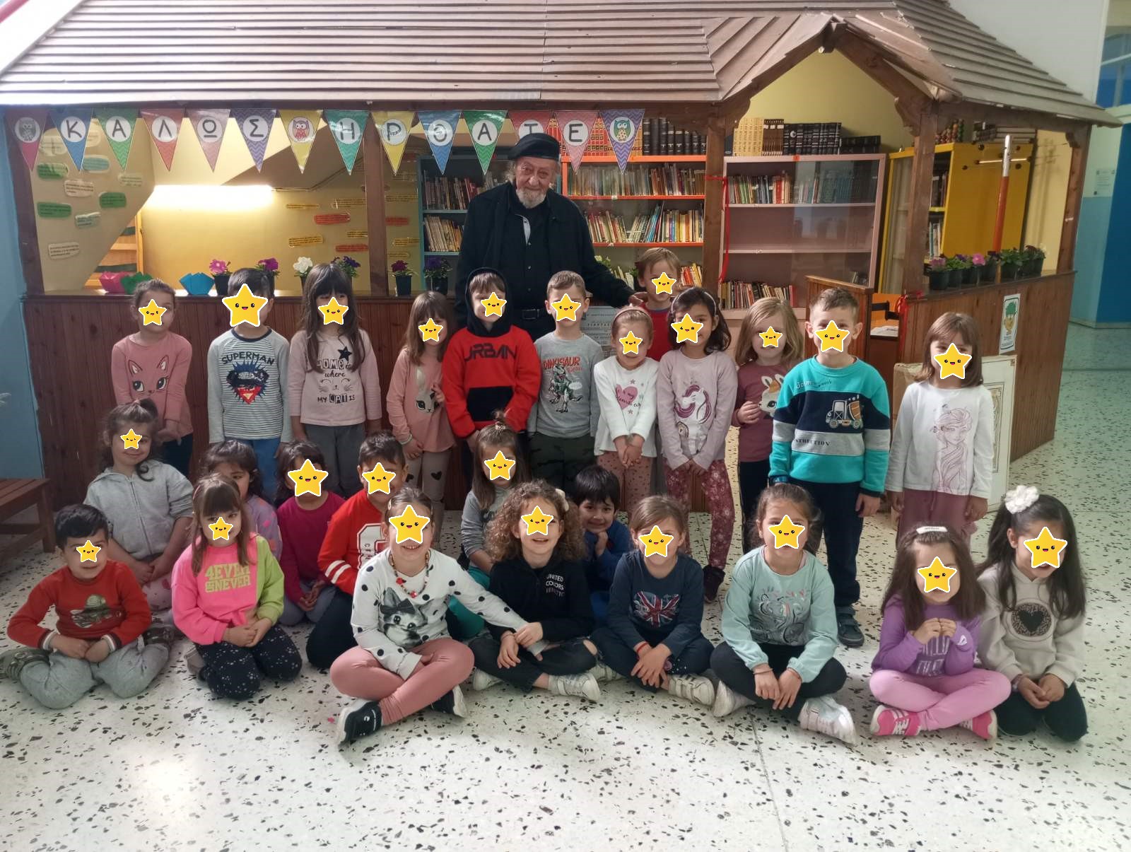 Επίσης παραβρέθηκε ο συνταξιούχος δάσκαλος κ. Τάσος Τσουμαχίδης που έφτιαξε την βιβλιοθήκη πριν πολλά χρόνια όταν δούλευε στο συγκεγκριμένο σχολείο ο οποίος είναι παππούς μαθητή του Νηπιαγωγείου μας.