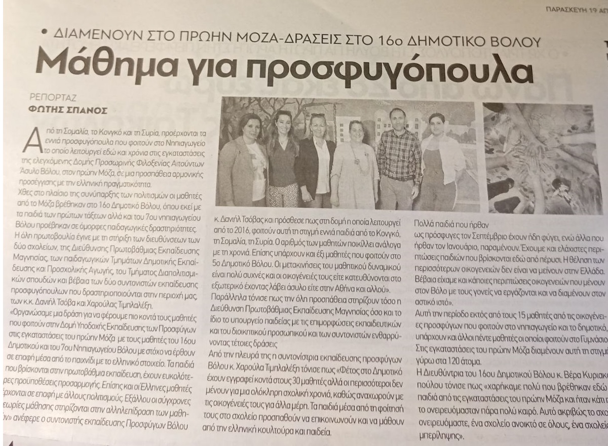 Ευχαριστούμε τη κα Ιωάννα Τσαπαδά και την διεθύντρια του 16ου Δημοτικού Σχολείου κα Βέρα Κυριακοπούλου
