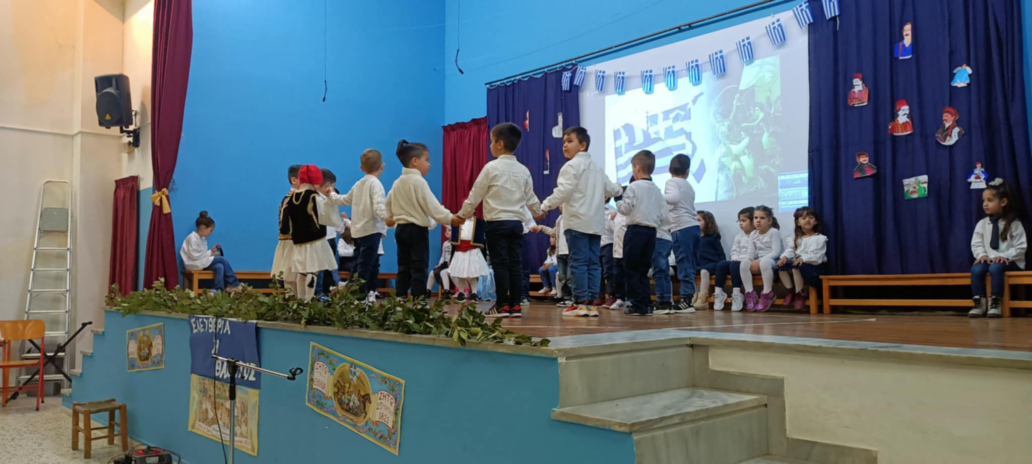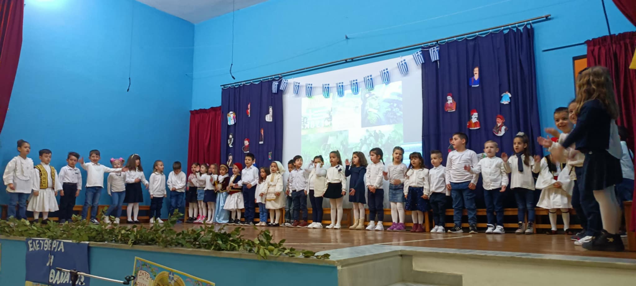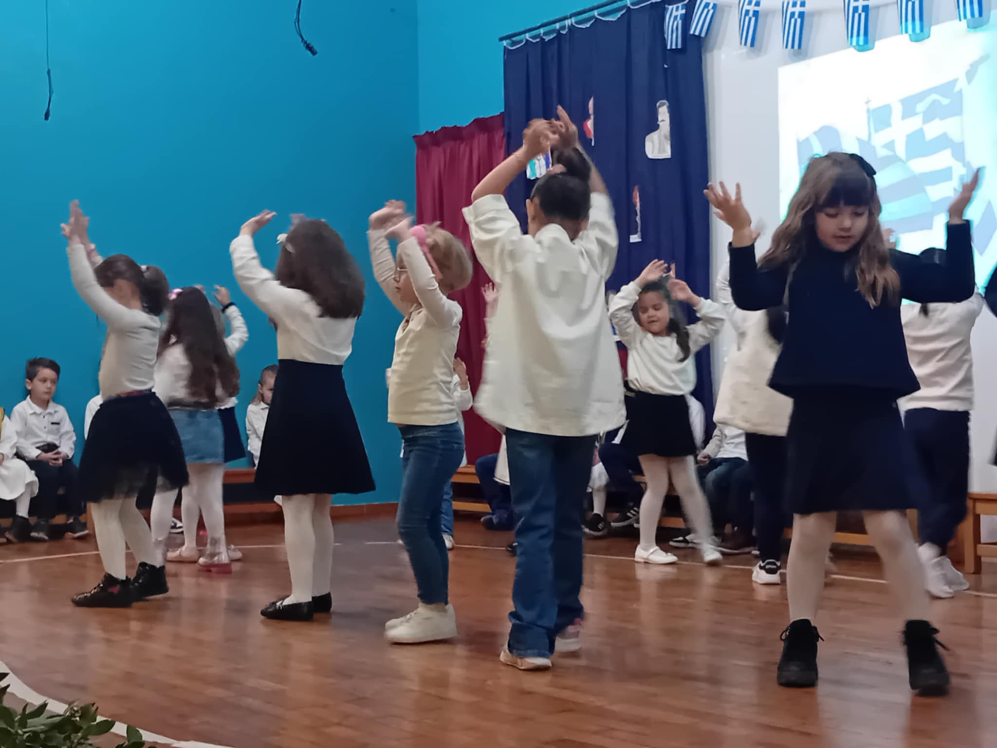 Στη συνέχεια τα παιδιά είπανε ποιήματα και τραγούδια επετειακά.