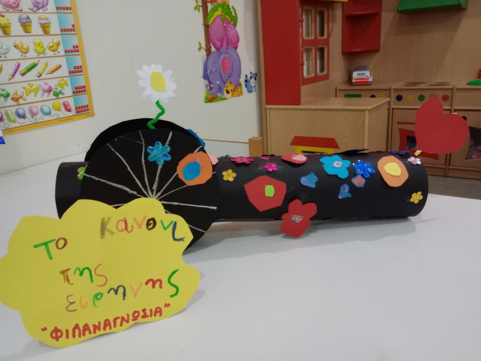 Η εβδομάδα που μας πέρασε ήταν αφιερωμένη στο ΟΧΙ, στα γεγονότα που διαδραματίστηκαν το 1940, τον τορπιλισμό της Έλλης, το Όχι του Ι. Μεταξά, τον πόλεμο στα βουνά της Πίνδου, τα χρόνια της κατοχής. Αναφερθήκαμε στο μεγαλείο της Ειρήνης, είπαμε τραγούδια για αυτήν. Κάναμε κατασκευές, διαβάσαμε βιβλία και τα δραματοποιήσαμε, επίσης, είδαμε σχετικό κουκλοθέατρο. Η ημέρα της γιορτής μας ολοκληρώθηκε με παρέλαση στην αυλή και τον εθνικό μας ύμνο!!! Και του χρόνου!!!
