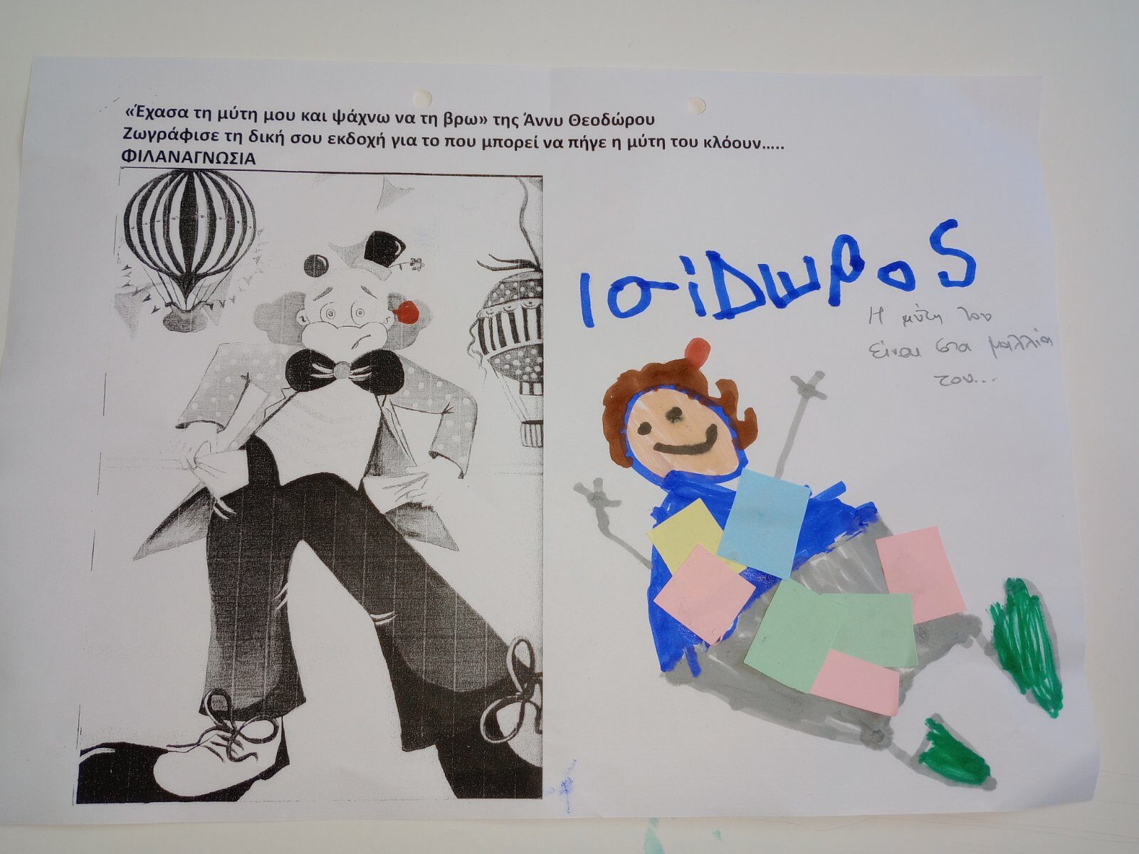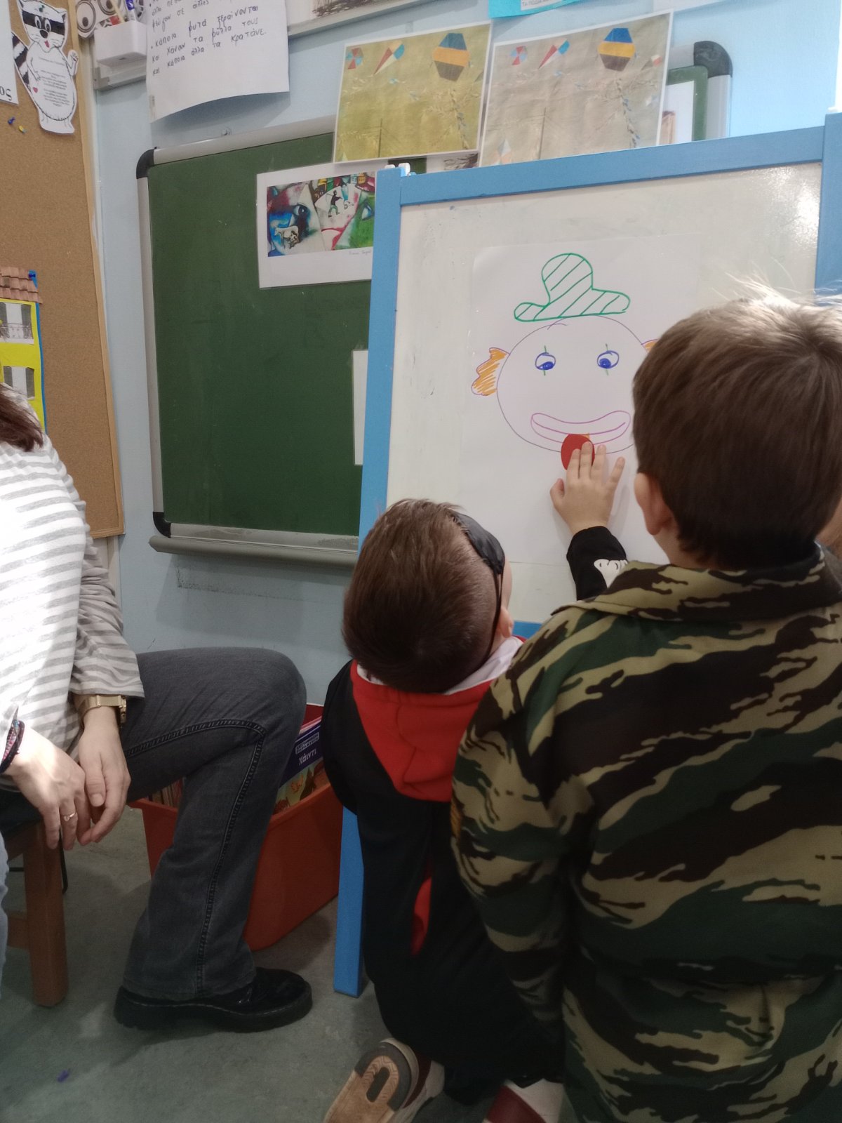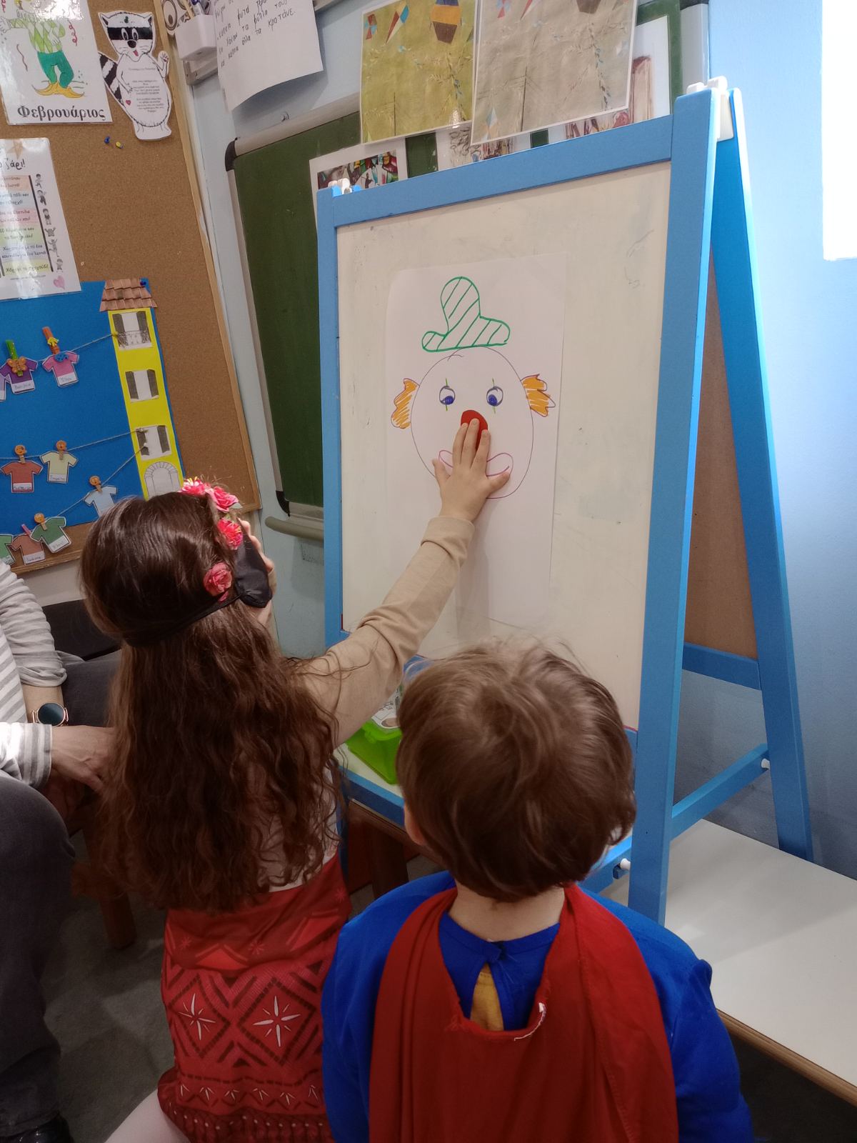 Φιλαναγνωσία “Έχασα τη μύτη μου και ψάχνω να τη βρω” της Άννη Θεοχάρη . Με αφορμή το παραπάνω βιβλίο,που επεξεργαστήκαμε στα πλαίσια του Σχεδίου Δράσης της Φιλαναγνωσίας παρακάτω παρουσιάζεται φύλλο εργασίας και παιχνίδι με ζευγάρια, το ένα παιδί έχει κλειστά τα μάτια του και το άλλο προσπαθεί να το καθοδηγήσει ώστε να τοποθετήσει τη μύτη του κλόουν στο σωστό σημείο του προσώπου του.