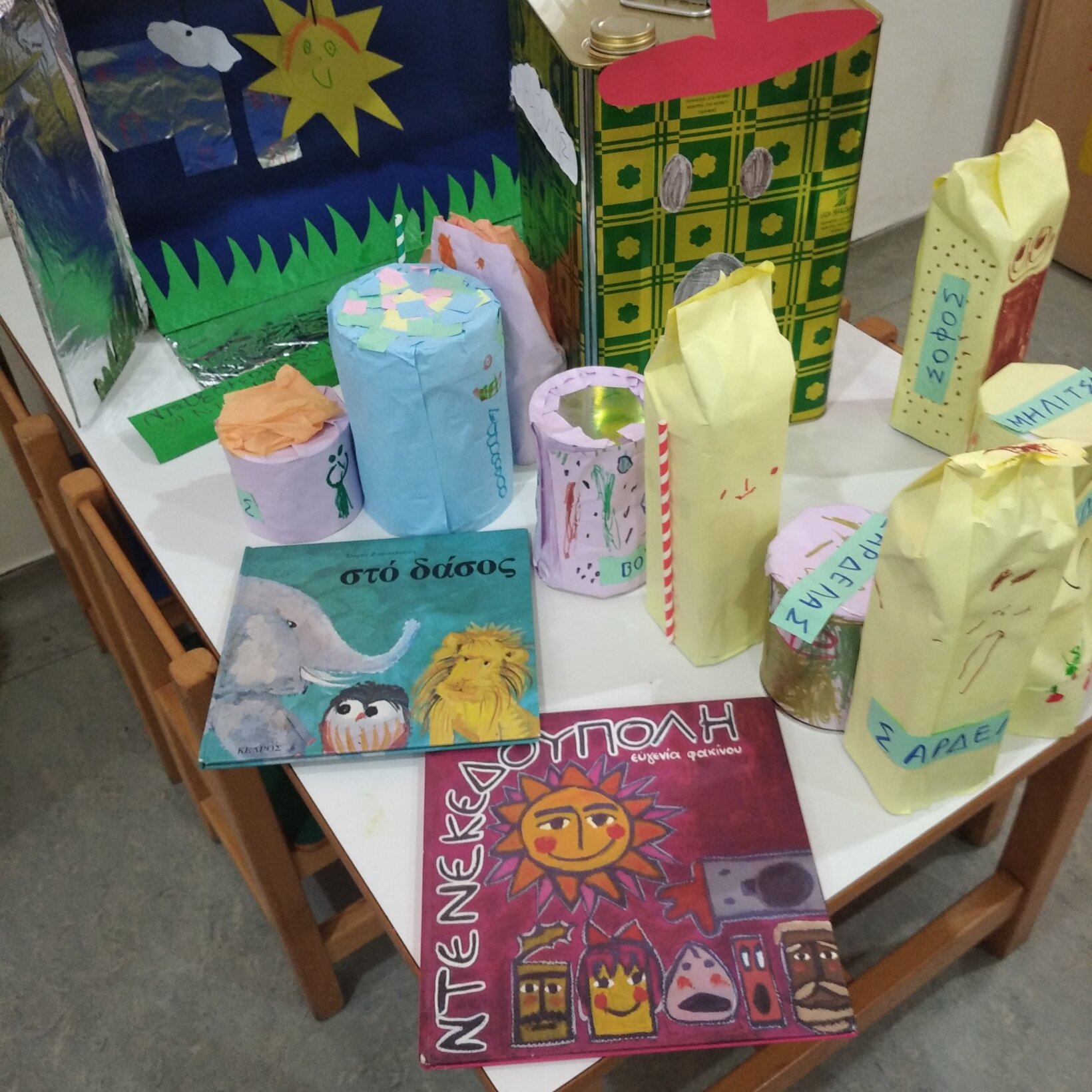 Διαβάσαμε τη “Ντενεκεδούπολη”, φτιάξαμε τους ήρωες με τα ντενεκεδάκια που έφεραν οι γονείς και δραματοποιήσαμε την ιστορία.