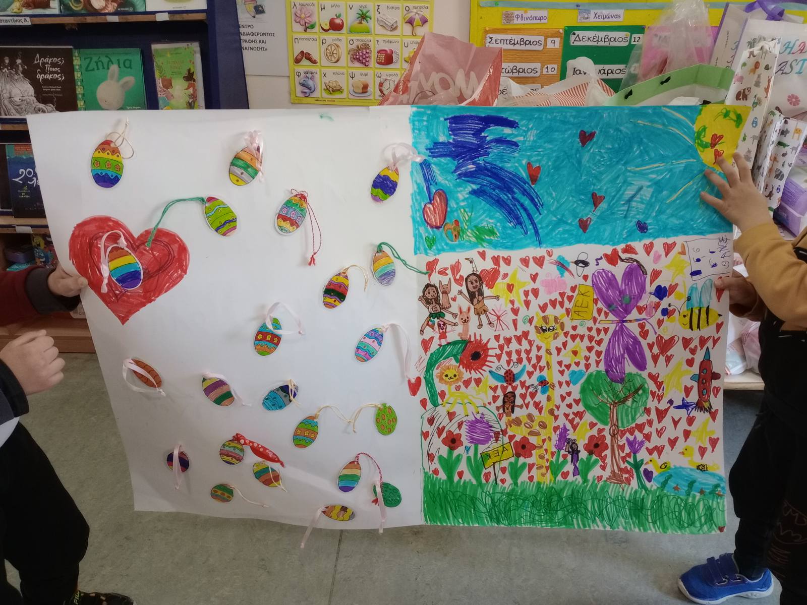 Πρωτομαγιά, όμως, από τα αρχαία χρόνια, σημαίνει λουλούδια και στεφάνια, και έτσι, γεμίσαμε τις τάξεις μας με χρώματα και άνθη…