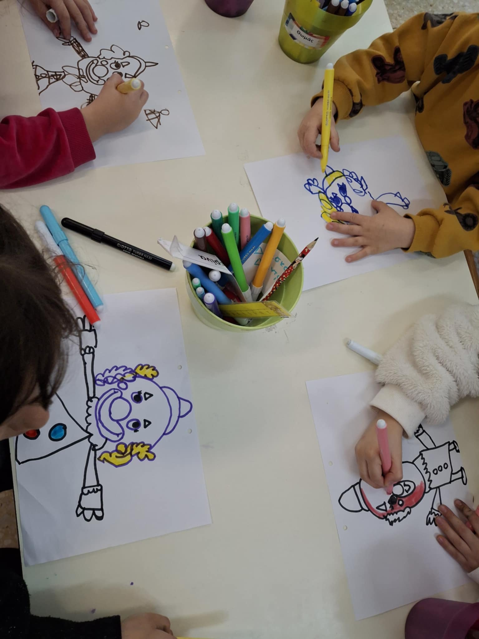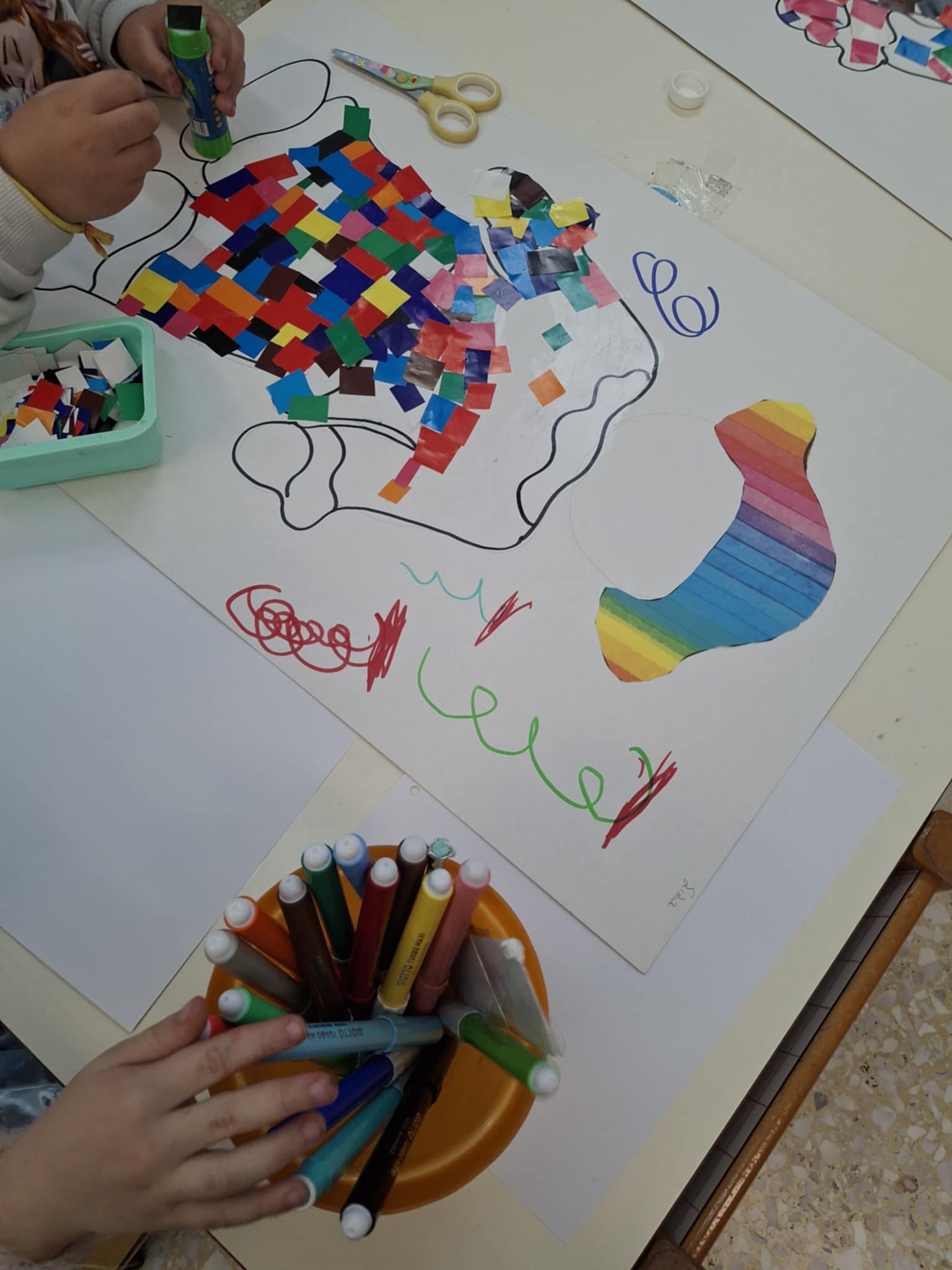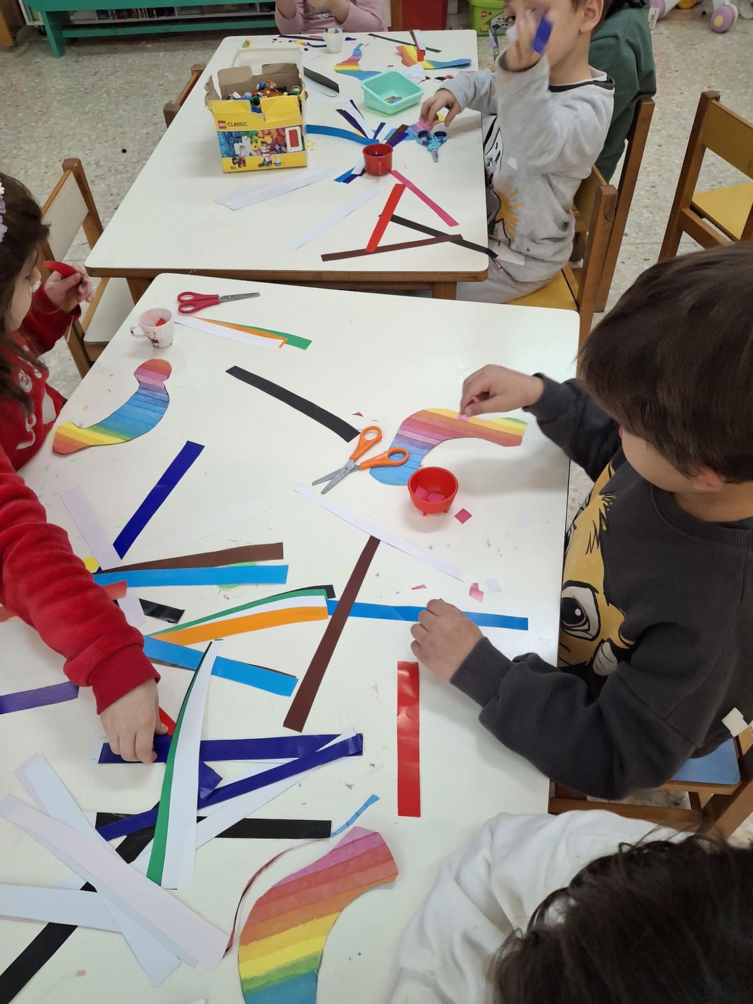 Οι πίνακες ζωγραφικής μεγάλων ζωγράφων όπως Picasso, Mondrian, Miro, Klee, Ιακωβίδη έγιναν αφορμή για συζήτηση όπου τα παιδιά περιέγραψαν τους πίνακες , τα χρώματα το θέμα τους, τα συναισθήματα που εκπέμπονται εκφράζοντας τη δημιουργικότητά τους και ζωντανεύοντας τις ιδέες τους στο χαρτί.