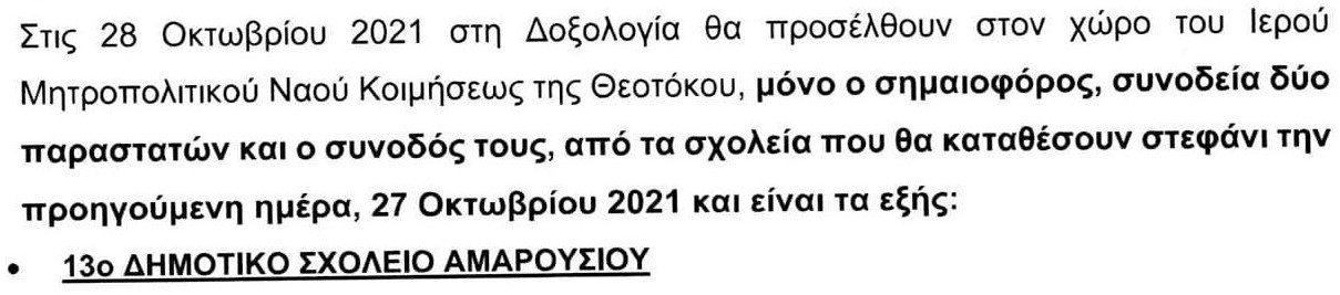- Σήμερα, 26-10- 2021, το πρωί λάβαμε ΝΕΑ ενημέρωση από τη διοίκηση Αμαρουσίου (δίνουμε μέρος των σχετικών οδηγιών):