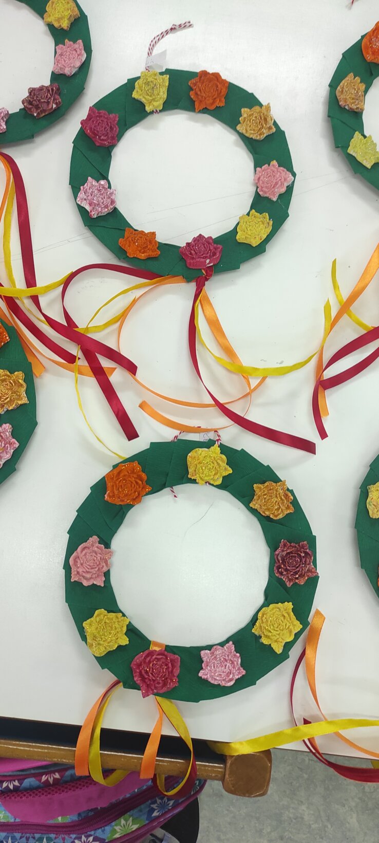 Έτσι και εμεις φτιάξαμε το δικό μας στεφανάκι από γύψινα λουλούδια τα οποία έβαψαν τα παιδιά με τέμπερες.