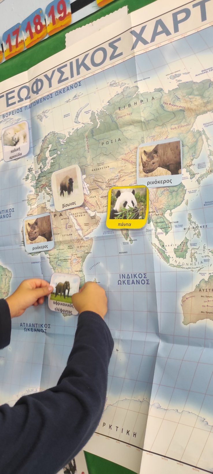 - Πάνω στον παγκόσμιο γεωφυσικό τοποθετούν τα ζώα ύπο εξαφάνιση και έτσι αντιάμβανονται σε ποιες ηπείρους ζουν