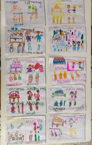 Διαβάσαμε το ποίημα ¨ήρθε η Πασχαλιά¨ και βρήκαμε τους ήχους που κρύβονται μέσα στο ποίημα. Έπειτα χωριστήκαμε σε ομάδες, όπου η κάθε ομάδα είχε αναλάβει να ζωγραφίσει και από μια στροφή του ποιήματος και στο τέλος φτιάξαμε όλοι μαζί ένα ομαδικό κολαζ.