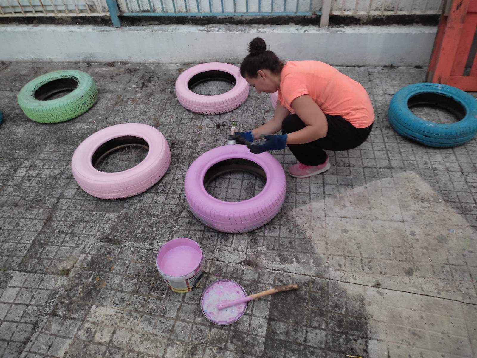 Με πρωτοβουλία του Συλλογου Γονέων και Κηδεμόνων του Νηπιαγωγείου μας πραγματοποιήθηκε μια σημαντική ενέργεια που αναβάθμισε τον εξωτερικό χώρο του σχολείου μας. Οι γονείς έβαψαν με ωραία χρώματα τα παγκάκια, τα τραπεζάκια και τα καρεκλάκια της αυλής μας καθώς και τις ρόδες τις οποίες χρησιμοποιούν τα νήπια για να κάνουν ισορροπία. Η αυλή μας έγινε πιο όμορφη και πιο ελκυστική για τα παιδάκια μας!!! Σας ευχαριστούμε πολύ!!!