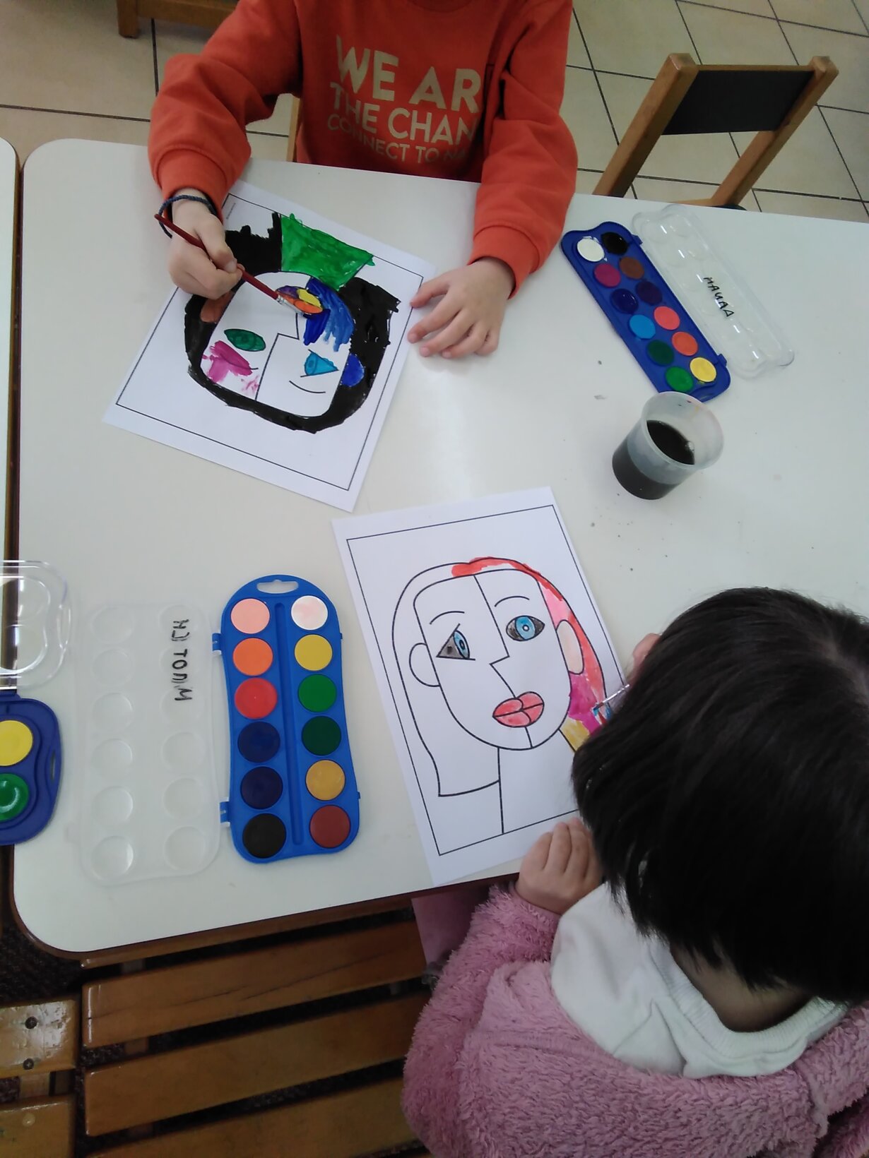 Φέτος αποφασίσαμε να συνδυάσουμε τις Απόκριες με την τέχνη και να ασχοληθούμε με τον διάσημο ζωγράφο Πάμπλο Πικάσο . Μιλήσαμε για τη ζωή του, μελετήσαμε τους πίνακες του , παρατηρήσαμε τα χρώματα και τα σχήματα και προσπαθήσαμε να ζωγραφίσουμε κι εμείς σαν κι εκείνον!