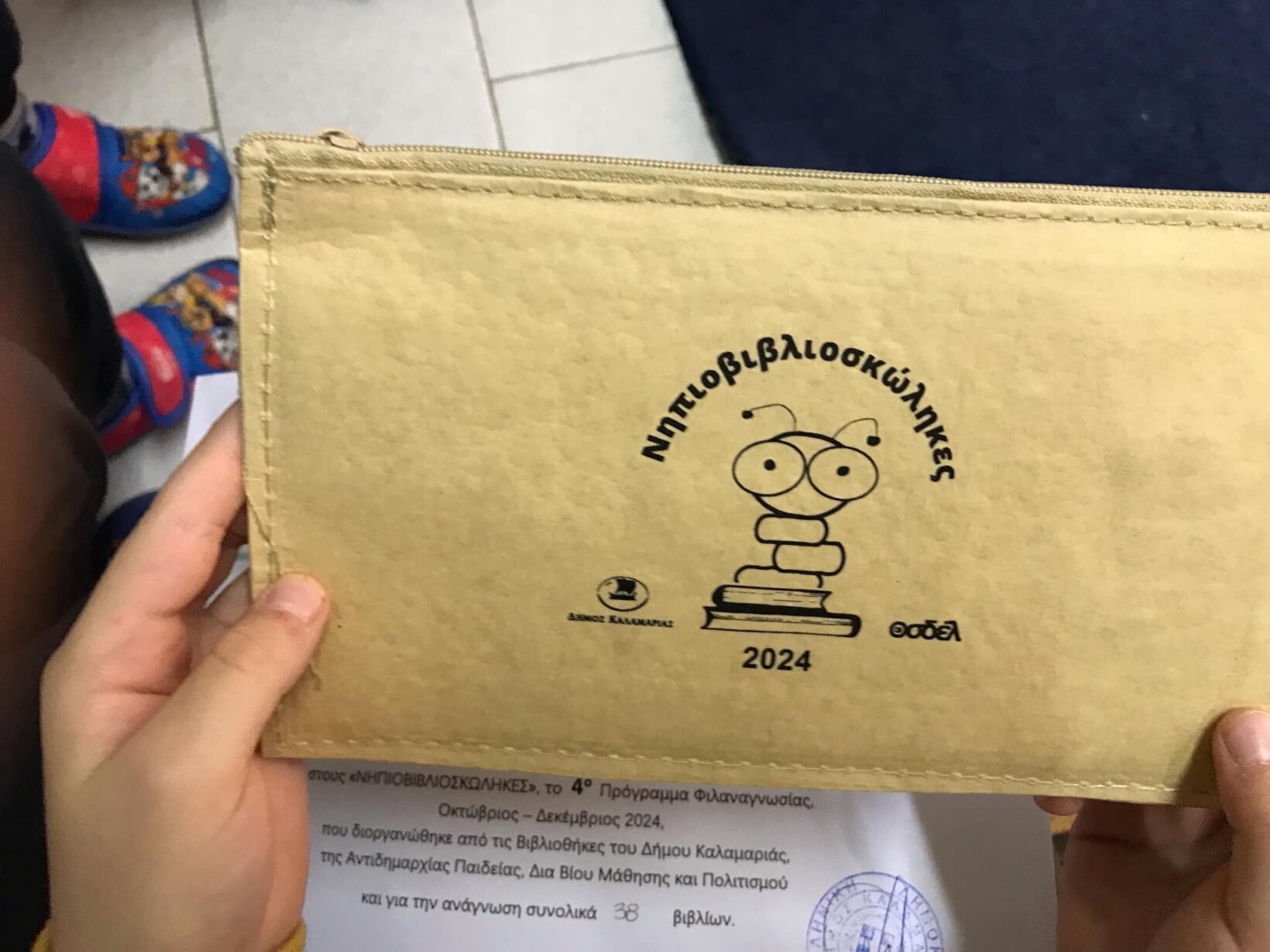 Μετά την ολοκλήρωση του 4ο προγράμματος φιλαναγνωσίας ΝΗΠΙΟΒΙΒΛΟΣΚΩΛΗΚΕΣ( Οκτώβριος- Δεκέμβριος) 2024 που οργανώνουν οι βιβλιοθήκες του Δήμου Καλαμαριάς με πολλή χαρά οι μαθητές που διάβασαν πολλά βιβλία παρέλαβαν τον έπαινο τους!!! Υπήρχε όμως δωράκι για όλα τα παιδιά και φυσικά ενθάρρυνση για να αρχίσουν να συμμετέχουν όλα τα παιδιά στο πρόγραμμα φιλαναγνωσίας!!