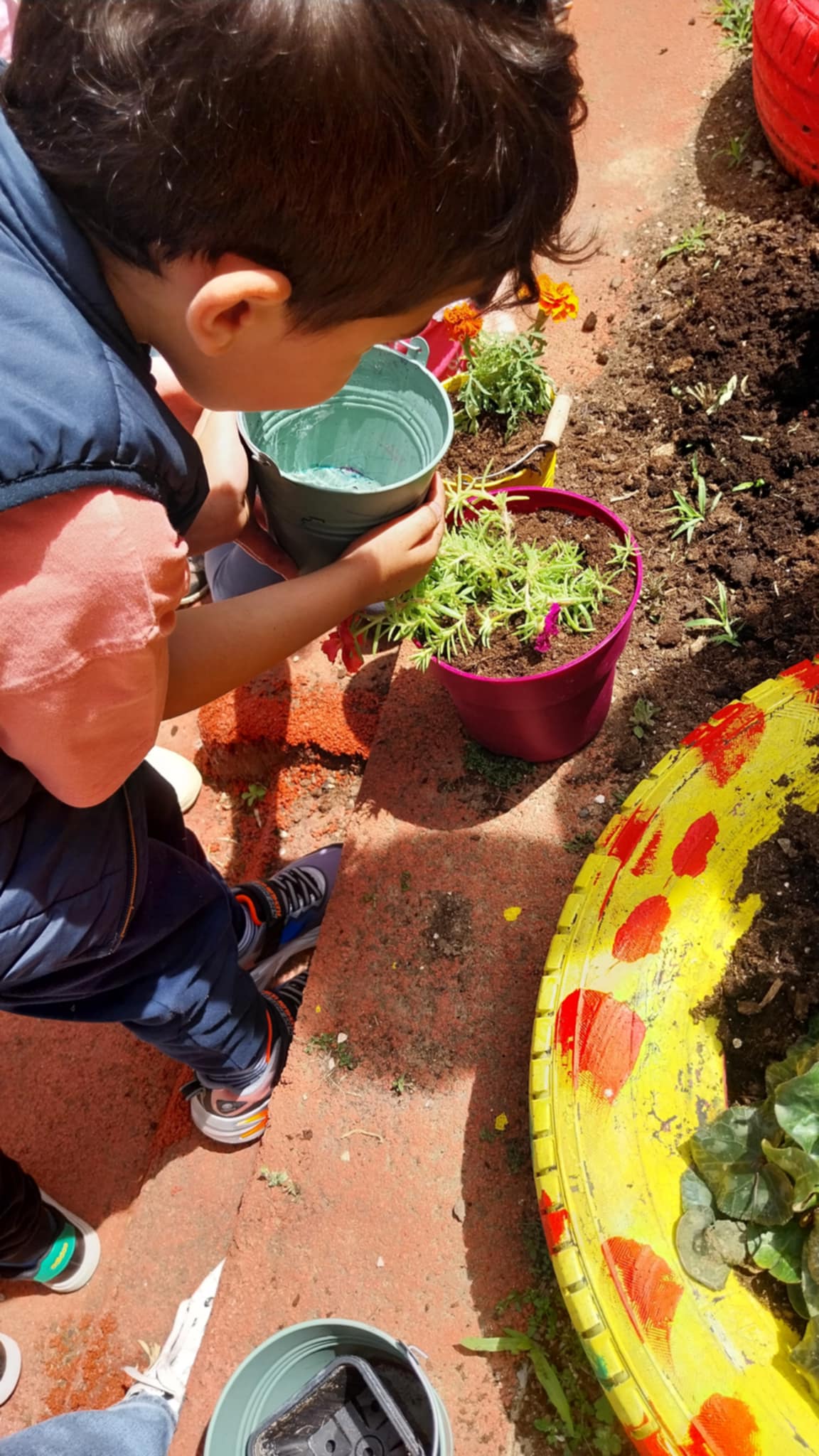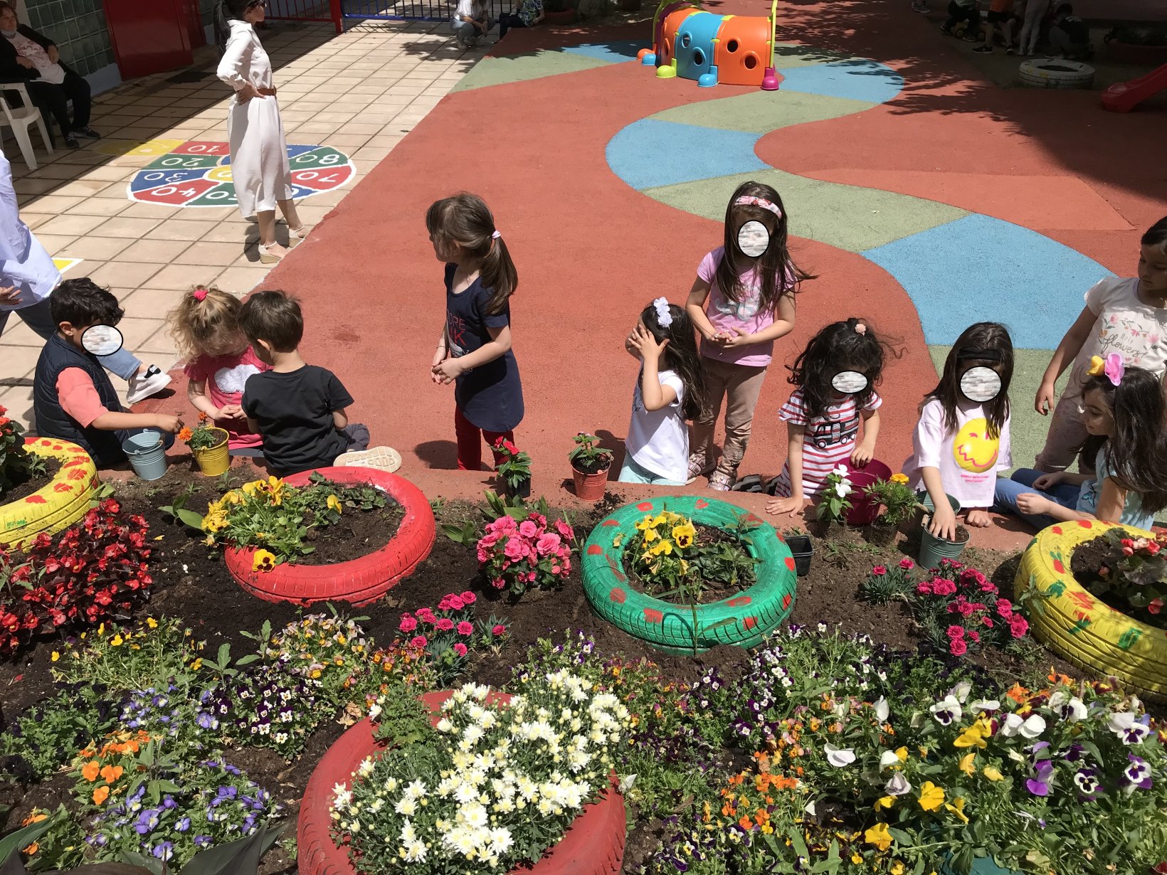 Στα πλαίσια του σχεδίου δράσης της σχολικής μονάδας πραγματοποιήθηκε κατά τη διάρκεια του σχολικού έτους , μια σειρά δράσεων για τον καλλωπισμό, τη συντήρηση και τη λειτουργικότητα του εξωτερικού χώρου του νηπιαγωγείου. Συγκεκριμένα: Τοποθετήθηκαν επιπλέον παιχνίδια στην αυλή , δημιουργήθηκε ένας πανέμορφος κήπος με την προσφορά των φυτών και των λουλουδιών από την κυρία Τατιάνα , τοποθετήθηκαν παλέτες χρωματιστές σε πλευρά του τοίχου στις οποίες κρεμάστηκαν γλαστράκια, σχεδιάστηκε ο εξωτερικός τοίχος του νηπιαγωγείου με εξαιρετικές παιδικές ζωγραφιές από την κυρία Νίκη Πετρίδου- Καλογηροπούλου., φυτεύτηκαν έντεκα δεντράκια στο πίσω μέρος της αυλής επίσης προσφορά της κυρίας Τατιάνας Καραϊαρίδη και οργανώθηκε δράση με πρόσκληση σε όλους τους γονείς , όπου βάφτηκαν τα κάγκελα και η αυλόπορτα του νηπιαγωγείου. Ευχαριστούμε θερμά τους γονείς που ανταποκρίθηκαν στην πρόσκληση και αφιέρωσαν τον πολύτιμο χρόνο τους για να αναμορφωθεί η αυλή του νηπιαγωγείου!